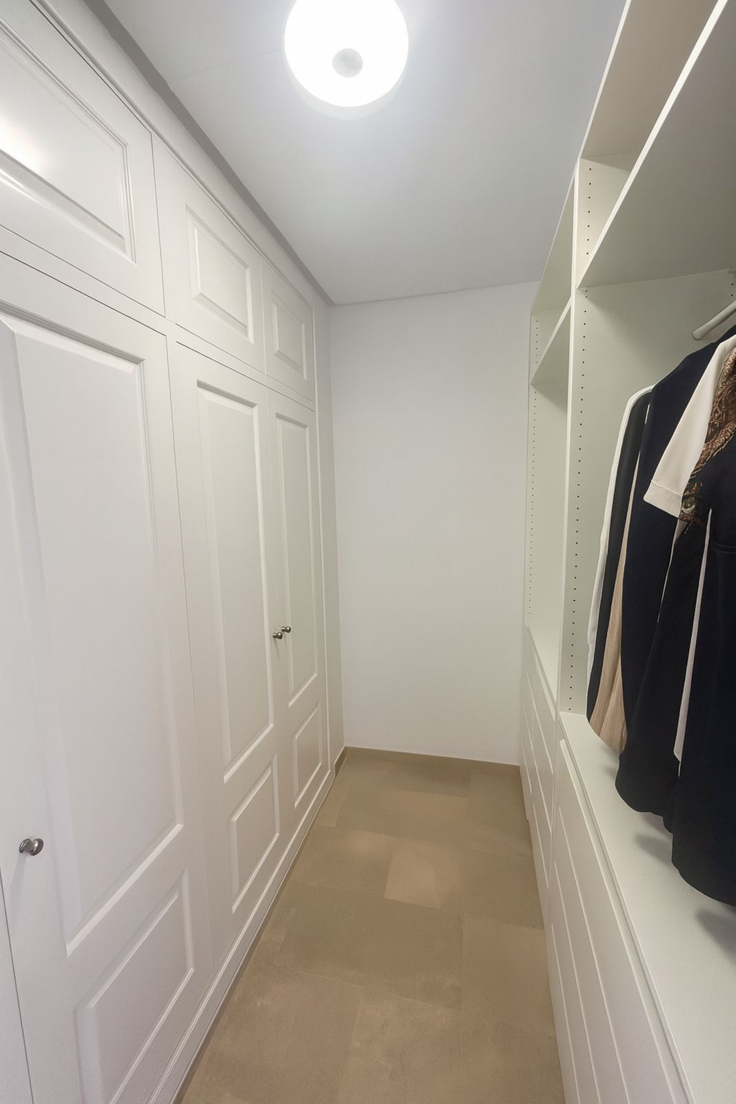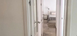 Binnen leidt een hal – die het woongedeelte en het slaapgedeelte scheidt door een glazen deur voor maximale privacy – van de woon/eetkamer naar het slaapgedeelte van het appartement. In dit gedeelte bevindt zich de gastenslaapkamer met een aparte badkamer met inloopdouche en toilet. Aan het einde van de gang is de master suite met een inloopkast en ensuite badkamer, die ook een wasmachine/droger bevat. Alle slaapkamers komen direct uit op het terras via glazen deuren, waardoor elke kamer kan genieten van natuurlijk licht en uitzicht op het groen.