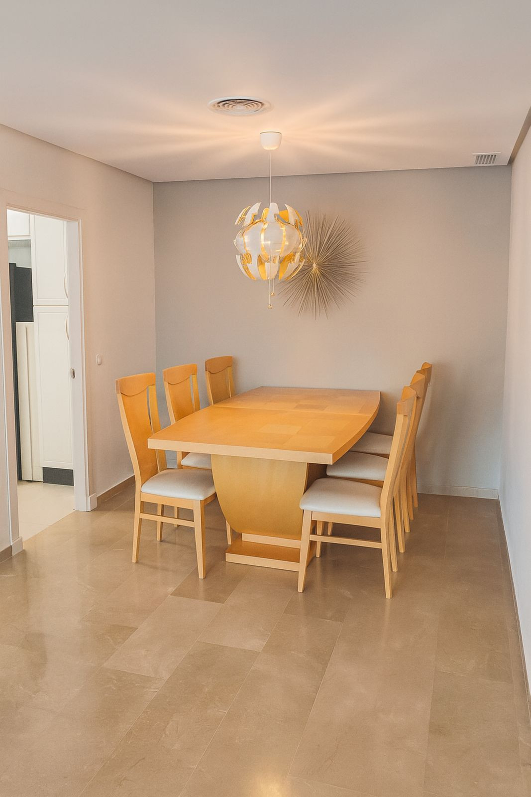 De zeer ruime woon/eetkamer (40 m²) loopt over in de aparte, volledig uitgeruste keuken. Vanuit de woonkamer is een slim ontworpen uitbouw gecreëerd, die kan worden gebruikt als extra derde slaapkamer, fitnessruimte of kantoor, met directe toegang tot het royale terras van 46 m², dat uitkijkt over het eerste van de vier gemeenschappelijke zwembaden in het project en de gemeenschappelijke tuinen, zonder zo dichtbij te zijn dat het zwembad overlast zou veroorzaken.