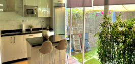 De woning heeft een totale oppervlakte van 135 m² (70 m² interieur + 65 m² privétuin), minder dan 2 jaar geleden volledig gerenoveerd, met een open keuken en woon-eetkamer met directe toegang tot de tuin.