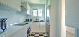 Binnen is het appartement zorgvuldig bijgewerkt, met een onlangs gerenoveerde keuken met een doorgeefluik naar de eethoek. De lichte woonkamer heeft een open haard en moderne openslaande deuren die volledig opengaan om de leefruimte uit te breiden naar het terras. De ouderslaapkamer heeft een eigen toegang tot het terras, elektrische rolluiken en een gerenoveerde ensuite badkamer. Een tweede tweepersoonsslaapkamer en een stijlvol bijgewerkte badkamer met ligbad maken het interieur compleet.