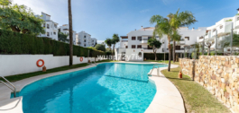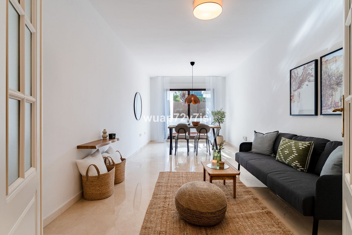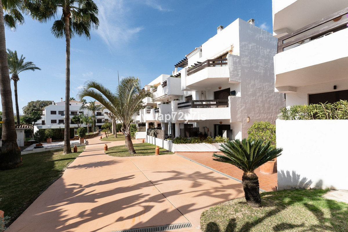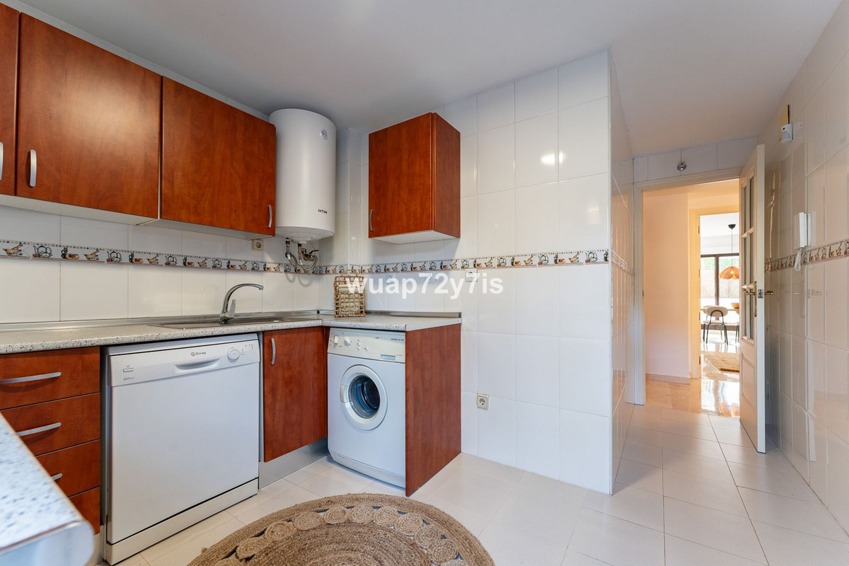 Dit appartement met drie slaapkamers ligt in de Costalita urbanisatie in Estepona East. Als je het appartement binnenkomt, vind je de woonkamer aan de linkerkant, die uitkomt op een overdekt terras. Aan de rechterkant is er een volledig uitgeruste keuken met nog een terras. Als je rechtdoor door de gang loopt, kom je bij drie slaapkamers en twee badkamers. Een van de slaapkamers heeft een en-suite badkamer voor extra comfort. Bewoners van de urbanisatie hebben ook toegang tot een gedeeld zwembad.