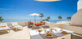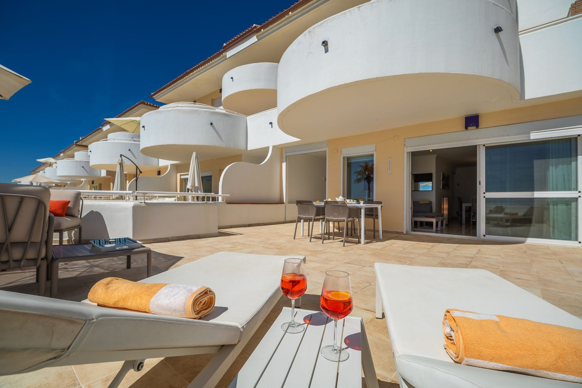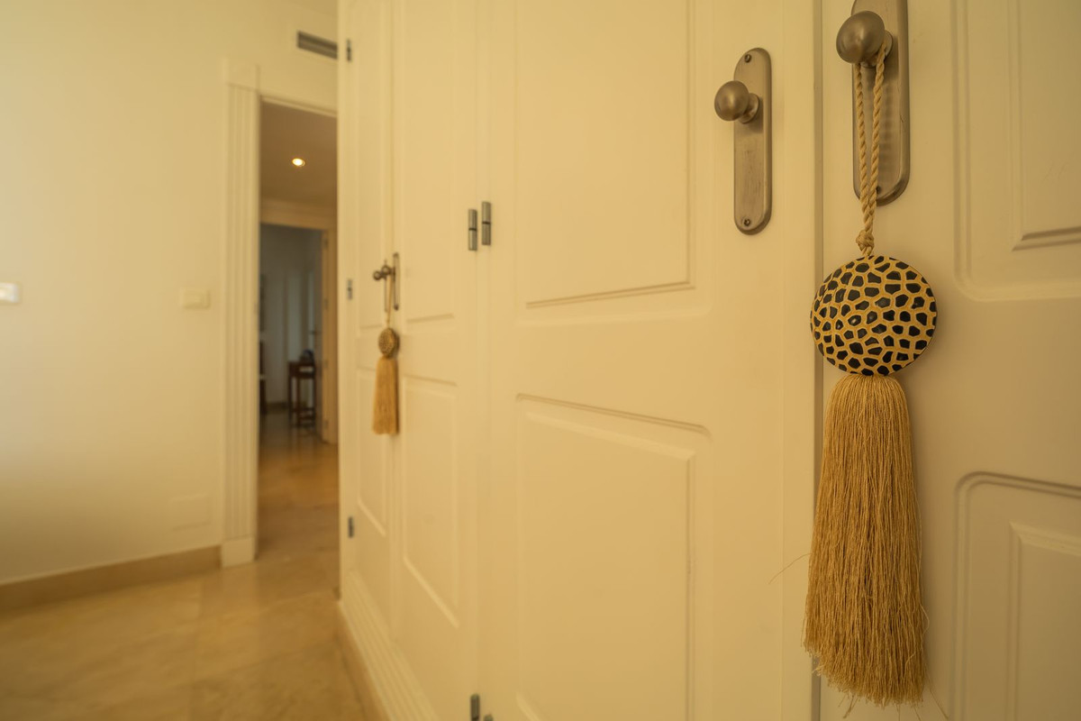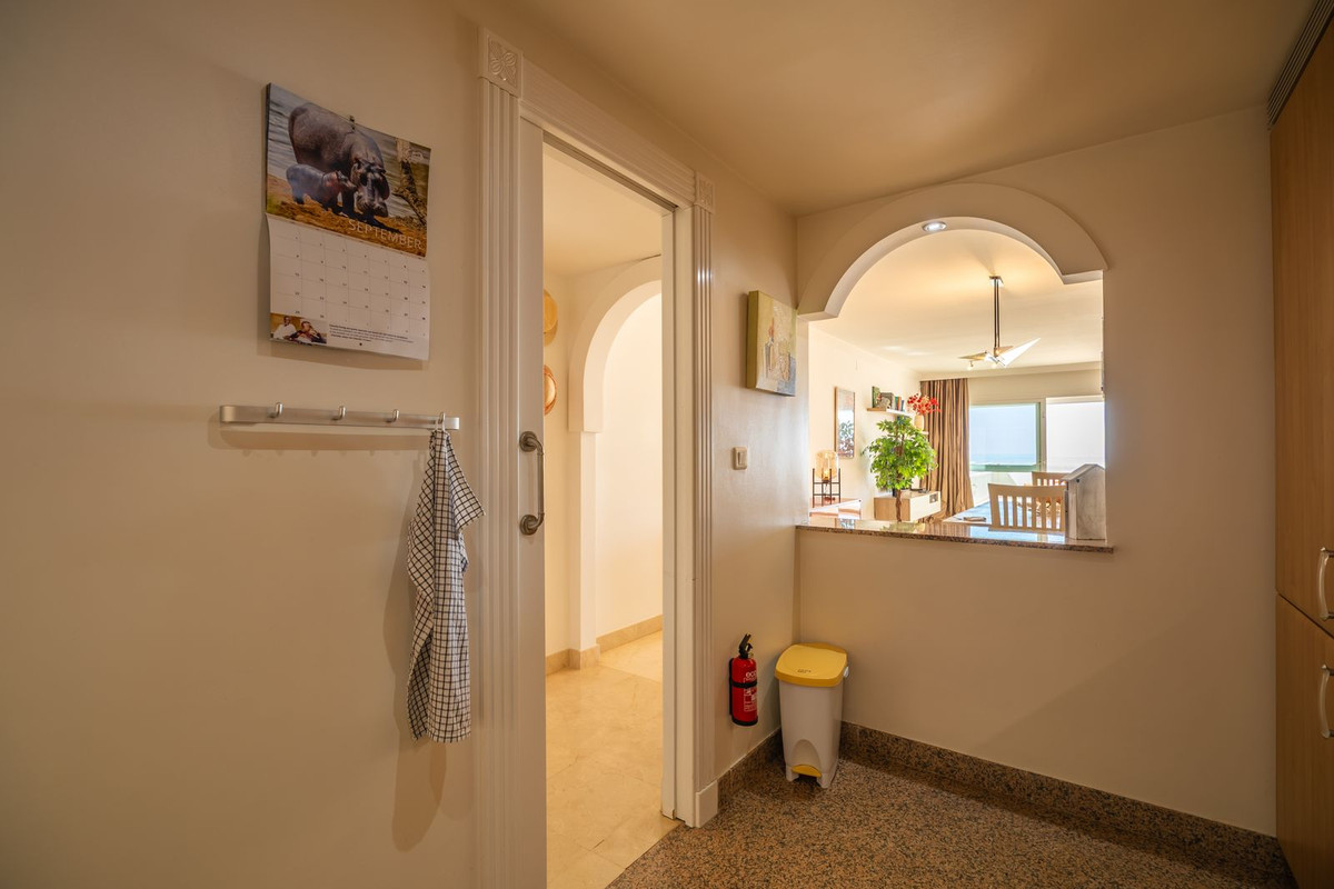MAGNIFICENT BEACHFRONT APPARTEMENT MET STERK UITZICHT OVER DE ZEE, HET STRAND, DE BERGEN EN DE AFRIKAANSE KUST, MET EEN RUIM TERRAS VAN 77 m². Deze woning is gelegen in de wijk Estepona, tussen Estepona stad en het charmante Puerto de la Duquesa – op slechts 5 minuten rijden van allerlei voorzieningen en verschillende golfbanen van verschillende niveaus, waaronder de bekroonde Finca Cortesín, consequent erkend als beste golfresort van Spanje en gastheer van prestigieuze toernooien zoals de 2023 Solheim Cup en de Volvo Masters. Het appartement is gunstig gelegen op hetzelfde niveau als de parkeerplaats, met directe toegang tot de residentie, en heeft ook een verhoogde positie (4e verdieping) boven de zeespiegel vanaf het terras. Het ligt op het zuidoosten en biedt een panoramisch uitzicht op zee over prachtig aangelegde tuinen die zich helemaal uitstrekken tot Afrika – de perfecte omgeving om te genieten van spectaculaire zonsopgangen. Het complex is zeer goed onderhouden, met ruime groene zones en een groot zwembad. Een parkeerplaats in de garage en een berging zijn inbegrepen. We raden een bezichtiging ten zeerste aan – JUST LISTED!