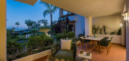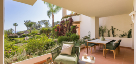 Ervaar de luxe van de kust in dit exclusieve appartement op de begane grond in Bahía del Velerín, een van de meest gewilde gemeenschappen aan het strand tussen Marbella en Estepona. Deze toplocatie biedt directe toegang tot een van de beste stranden van de Costa del Sol en een rustige tropische omgeving omringd door weelderige tuinen.