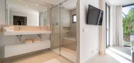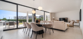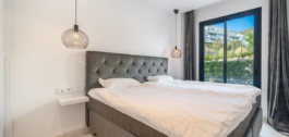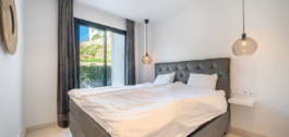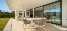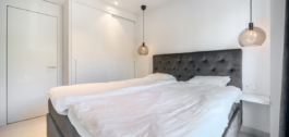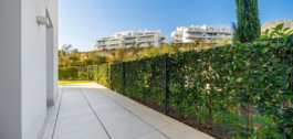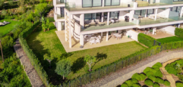 Prachtig op het westen gelegen hoekappartement in de tuin, met 3 slaapkamers en 2 badkamers, ruime woon-eetkamer, open keuken volledig ingericht en voorzien van elektrische apparaten van Bosch, waaronder een MIELE koelkast/vriezer, wasruimte met wasmachine/droger, groot omsloten terras van 78m2 met toegang vanuit de woonkamer en de hoofdslaapkamer. Er is ook een terras aan de achterzijde van 34m2 met toegang vanuit de secundaire slaapkamers. Ruime privétuin van 258m2. Hoofdslaapkamer met ensuite badkamer en inloopkast. Airconditioning warm en koud, ingebouwde kasten in secundaire slaapkamers en hal entree, video-intercom, domotica systeem, pre-installatie alarmsysteem, waterzuiveringssysteem in keuken, vloerverwarming in het hele appartement inclusief badkamers. Inclusief twee parkeerplaatsen (een parkeerplaats met elektrische auto-oplader) en een berging.