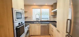 De flat heeft een praktische indeling: de keuken is aan de linkerkant, volledig uitgerust met apparatuur van goede kwaliteit, ideaal voor dagelijks gebruik.