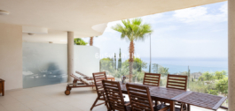 Spectaculair appartement in Benalmádena met frontaal uitzicht op zee waarvan je kunt genieten vanuit de woonkamer en de hoofdslaapkamer. Het bestaat uit 3 slaapkamers, waarvan één en suite, en de andere twee delen een badkamer met douche. Volledig ingerichte keuken open naar de woonkamer, die leidt naar het terras. Grote wasruimte en terras van ongeveer 85 m2. Dit alles is inclusief, gemeenschappelijk overloopzwembad met uitzicht op zee, verwarmd binnenzwembad, fitnessruimte, pilateskamer en sauna. Voorzieningen zoals airconditioning, vloerverwarming, domotica-systeem, pre-installatie van alarm. Dit appartement is gelegen in een gated community met onderhoudspersoneel.