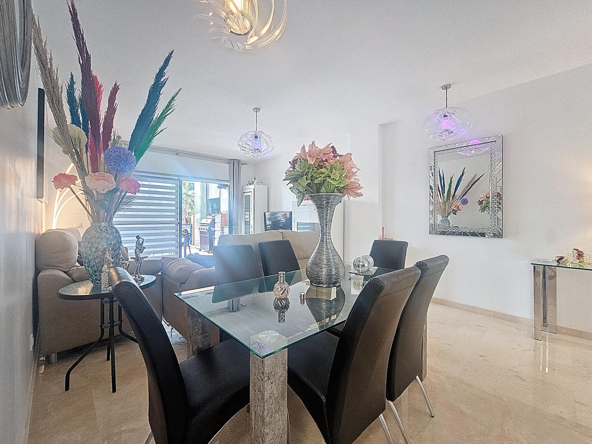 Dit appartement op de begane grond ligt in de prachtige urbanisatie Duquesa Suite en valt op door zijn rust, helderheid en aangename buitenruimte.
