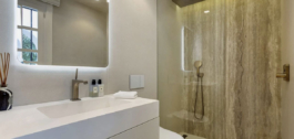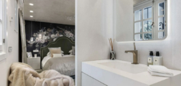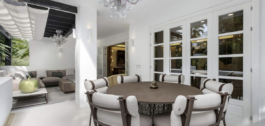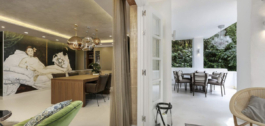 Deze luxe woning is gerenoveerd tot een zeer hoge standaard, met installaties zoals een Bulthaup keuken, Rimadesio kasten en deuren, Tom Dixon verlichting en vloerbedekking van groot formaat, keramische tegels van 1,20 cm vierkant. Het buitenmeubilair is geleverd door Ketal.