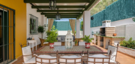 De woning beschikt over 93 m² bebouwd, verdeeld over drie ruime slaapkamers, twee badkamers (waarvan één en-suite) en een woon-eetkamer met directe toegang tot het spectaculaire terras van 119 m². Deze uitzonderlijke buitenruimte is ontworpen om optimaal te profiteren van het mediterrane klimaat, met een chill-outruimte, barbecue en veel ruimte voor familiebijeenkomsten en het entertainen van vrienden.