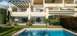 Welkom in Aloha Park – een van de meest prestigieuze wooncomplexen in Nueva Andalucía, omgeven door groene, goed onderhouden tuinen op een heuvel.