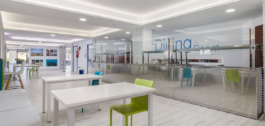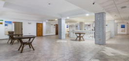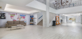 De lichte en luchtige welkomstreceptie geeft een idee van de grootte van het gebouw en de indrukwekkende, dubbelhoge trap met galerijen bevestigt deze indruk.