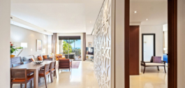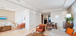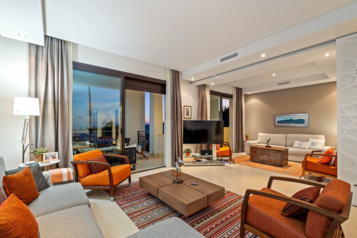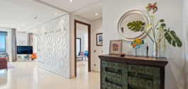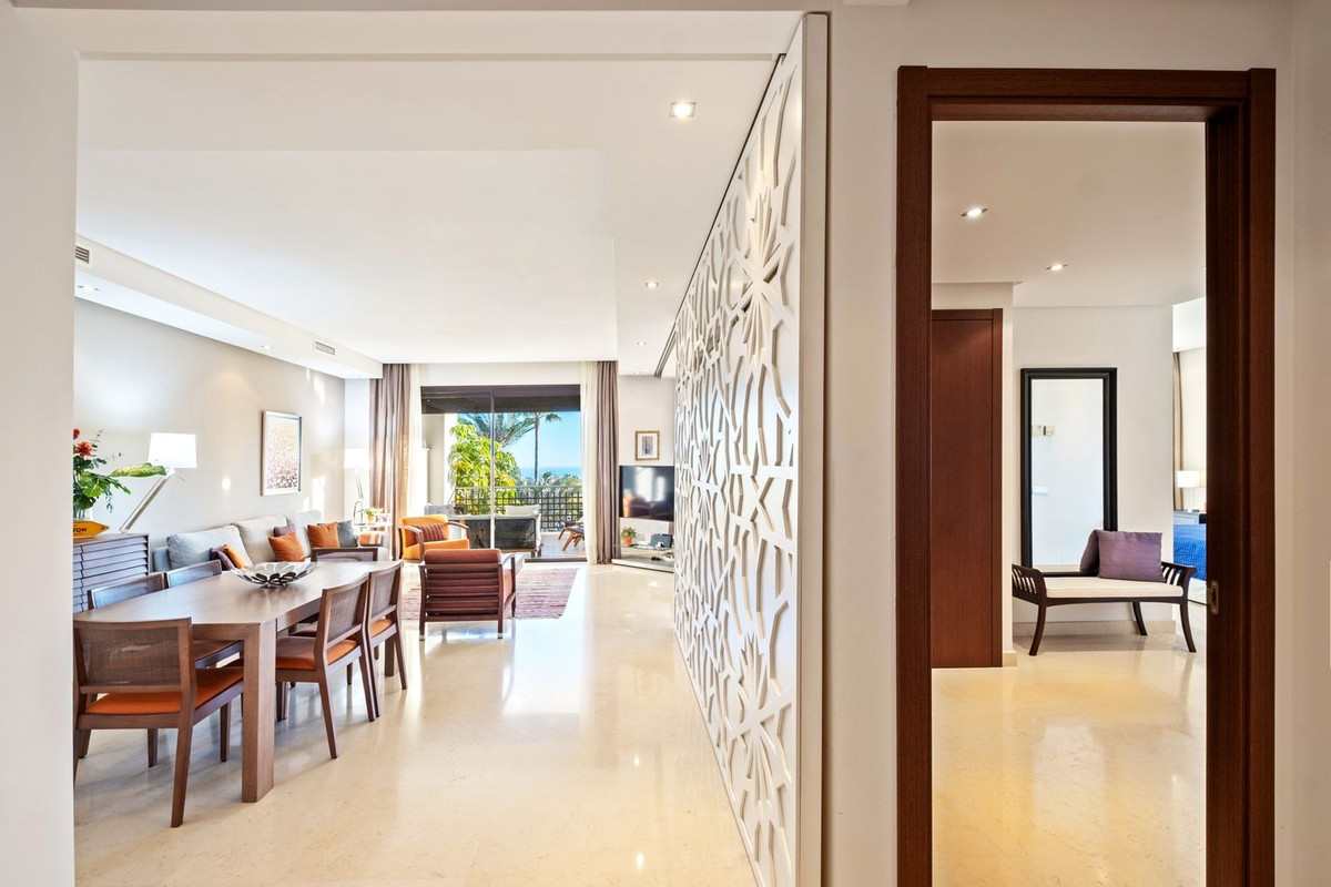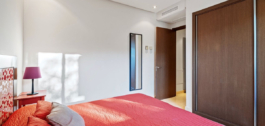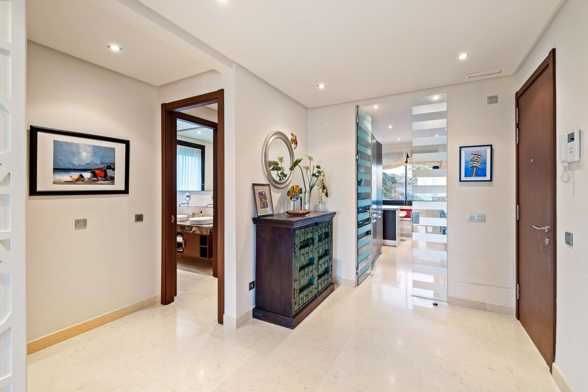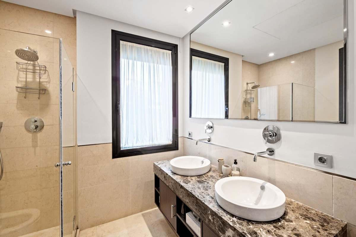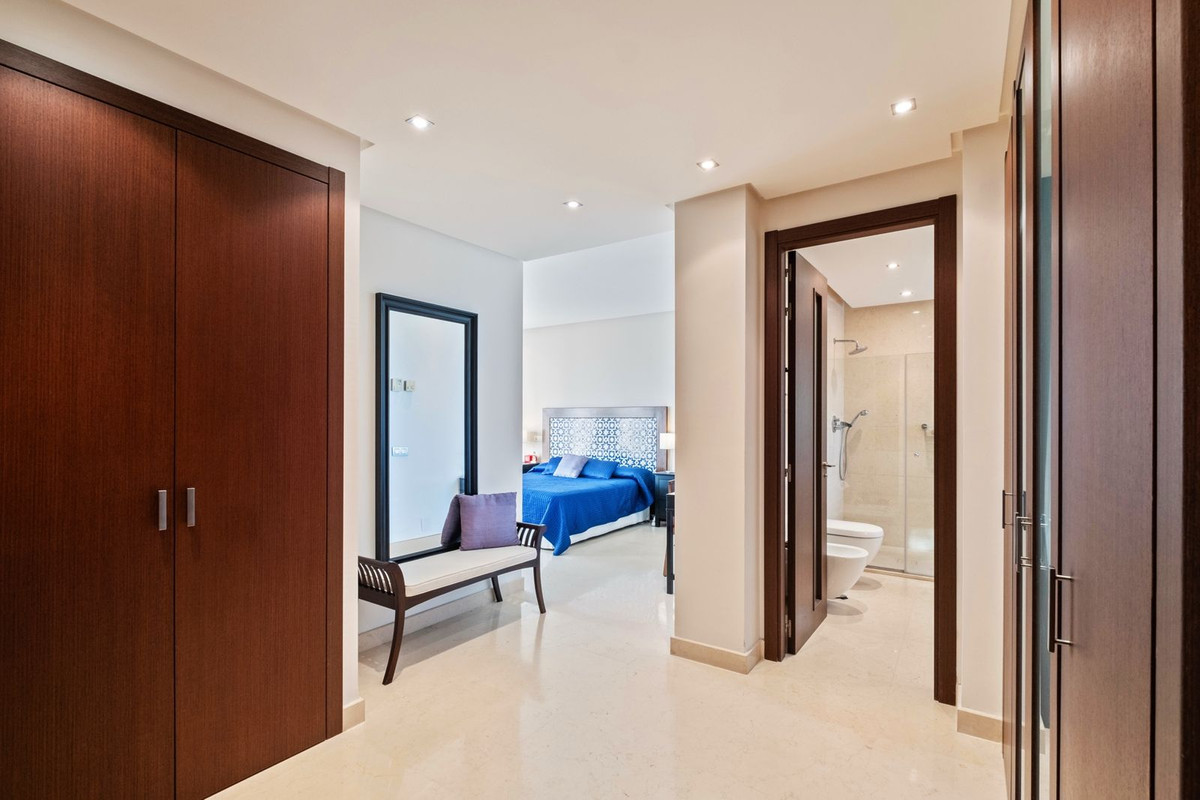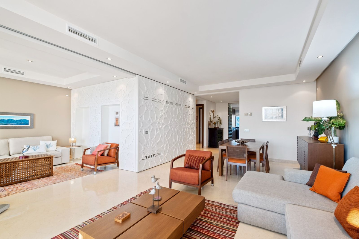 Het appartement heeft 2 slaapkamers en 2 badkamers, met zeer ruime kamers, vooral de hoofdslaapkamer. De woonkamer kan worden omgebouwd tot een derde slaapkamer: in geopende toestand is de deur volledig geïntegreerd en onzichtbaar, in gesloten toestand wordt het een stijlvolle opvallende muur.