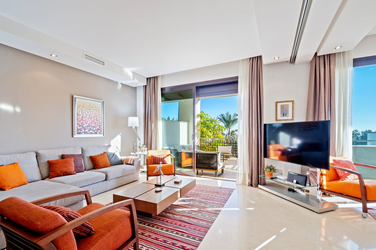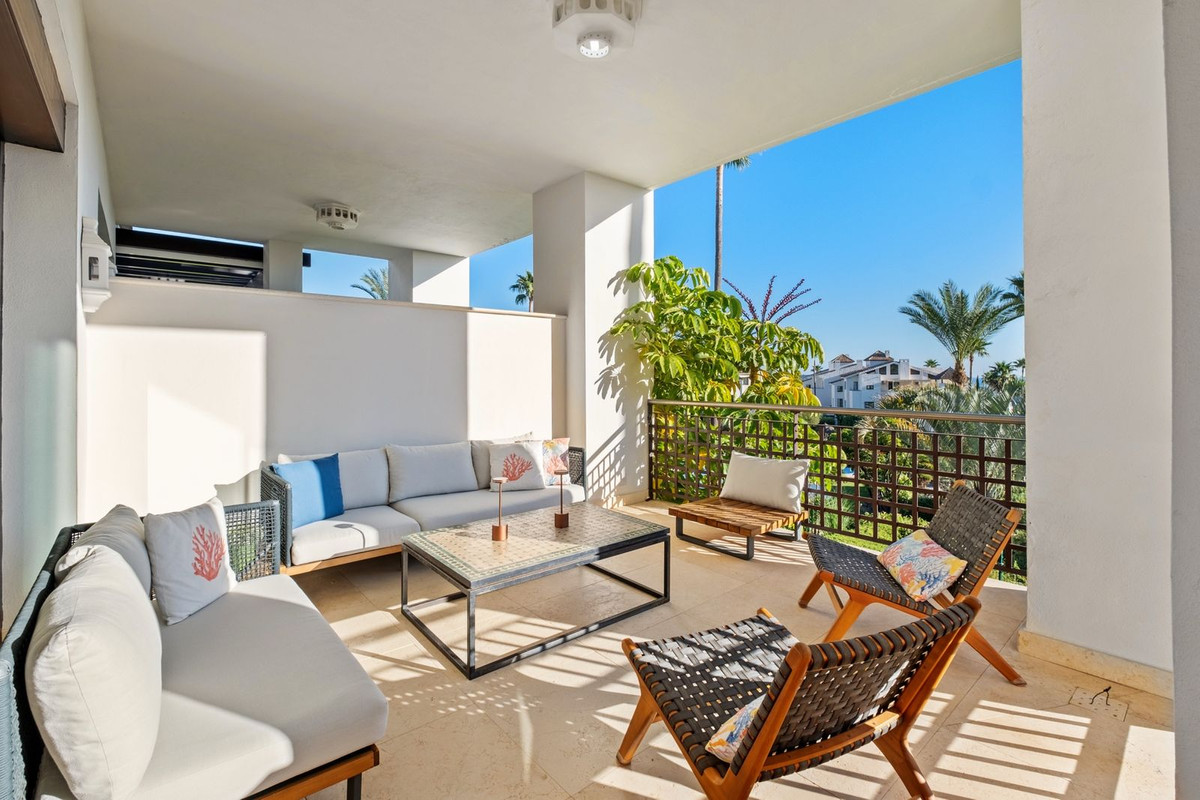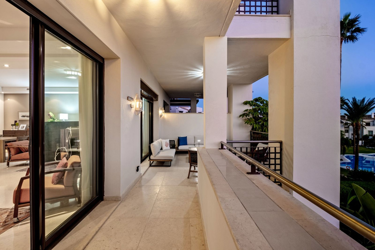 Royaal appartement van 136 m² in een prachtig onderhouden gesloten urbanisatie met 24-uurs beveiliging, tuinen en een gemeenschappelijk zwembad.