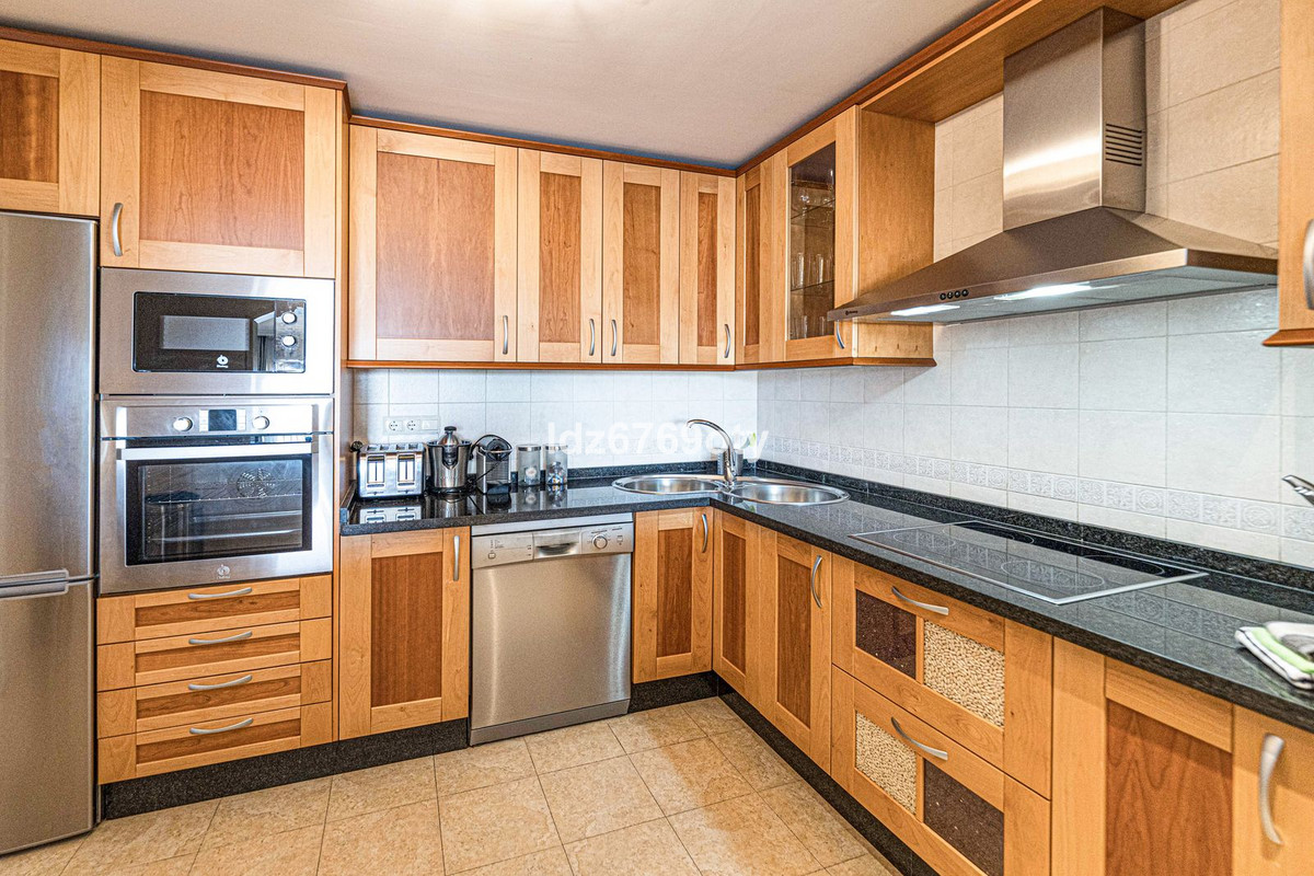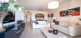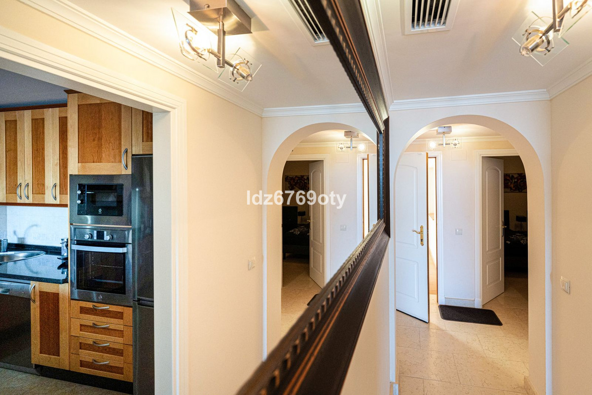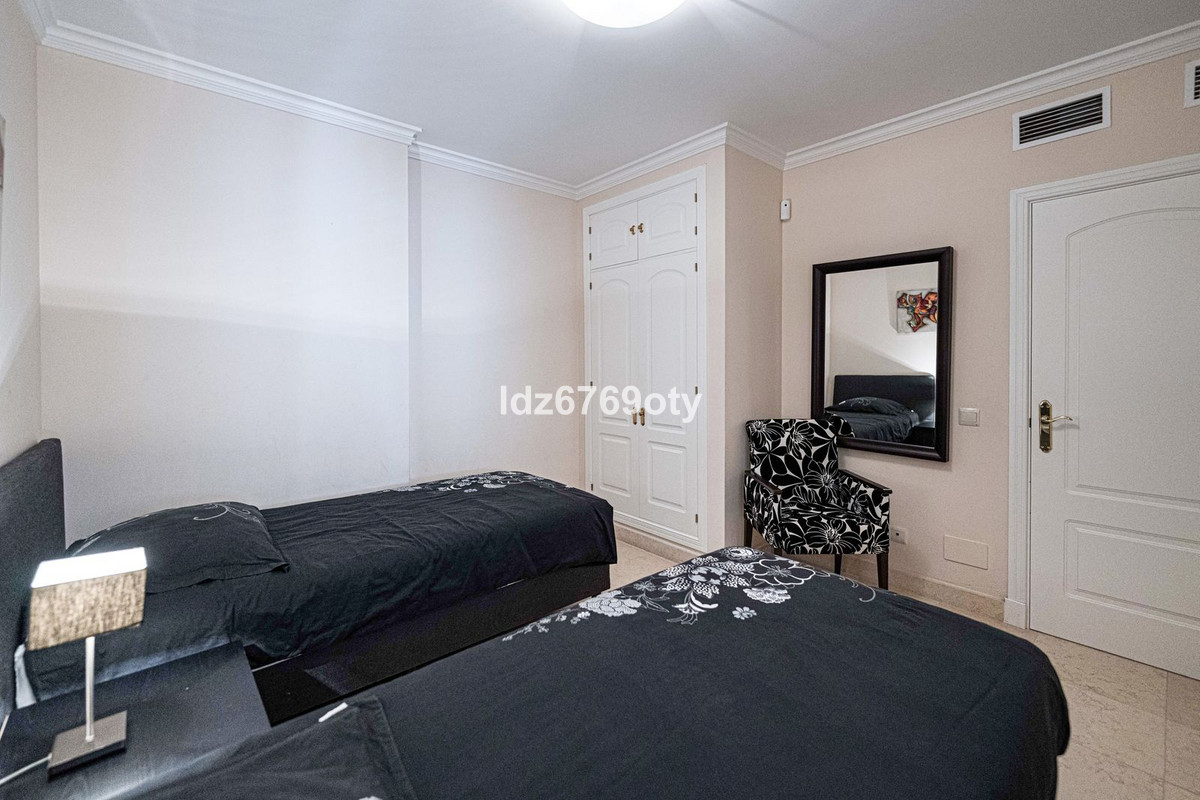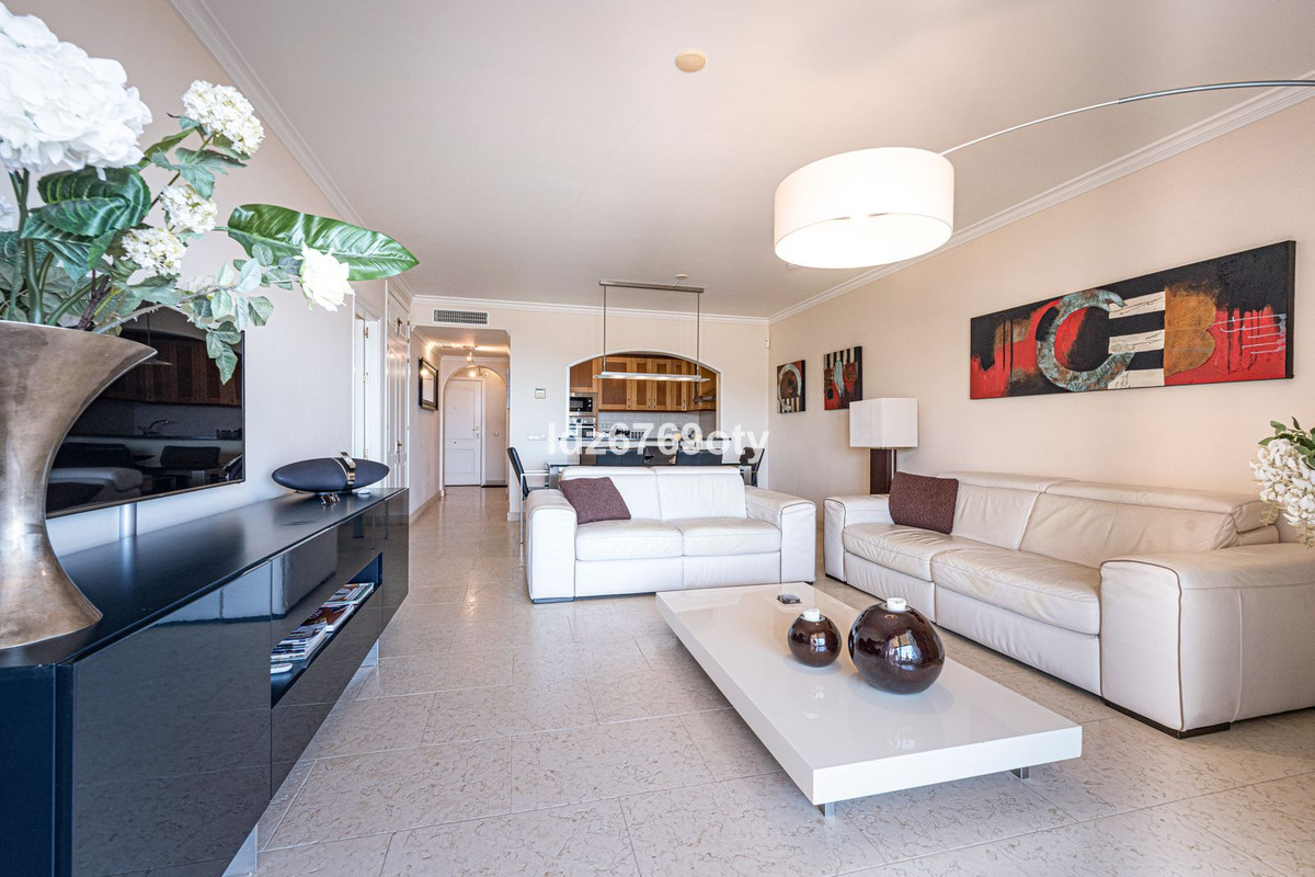 Het appartement met 2 slaapkamers, dat in uitstekende staat verkeert en een woonoppervlakte heeft van 90m2, ligt op het zuidwesten en bevindt zich op de 1e verdieping, die bereikbaar is met de lift vanuit de inpandige garage. Het neutraal ingerichte appartement is volledig gemeubileerd, voorzien van airconditioning/verwarming en heeft ook snelle WiFi. De open en ruime keuken biedt diverse inbouwapparatuur, waaronder een vaatwasser, oven, magnetron, koelkast/vriezer en een keramische kookplaat. De eet/woonkamer biedt directe toegang tot het ruime terras van 25 m² met uitzicht op zee en ruimte voor zowel ligstoelen als een eethoek voor zes personen. De ruime hoofdslaapkamer heeft ingebouwde kasten, een televisie en directe toegang tot het terras. De en-suite badkamer heeft een jacuzzi, douche, dubbele wastafels en een toilet. De tweede slaapkamer heeft ingebouwde kasten en maakt gebruik van een aparte tweede badkamer met een douche. Het appartement heeft ook een wasruimte met een wasmachine en een droger. De ondergrondse parkeergarage heeft ook een eigen berging en een parkeerplaats.