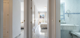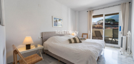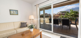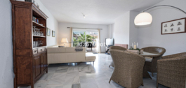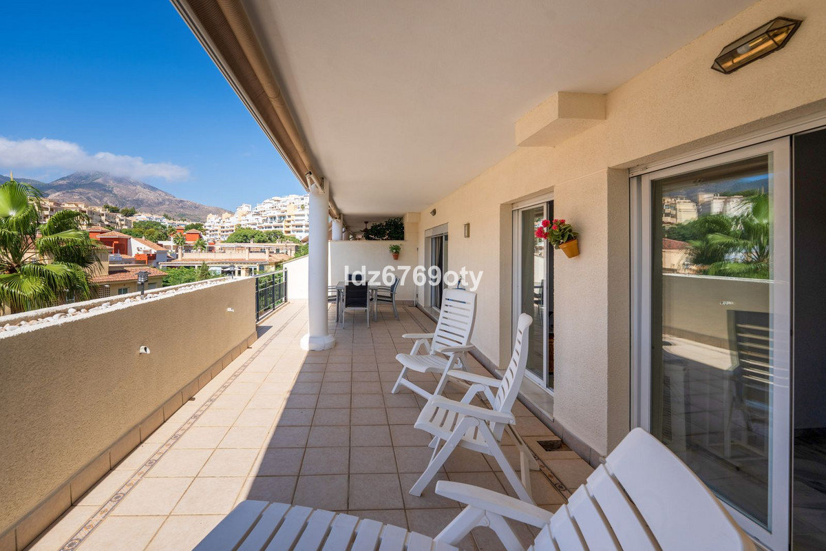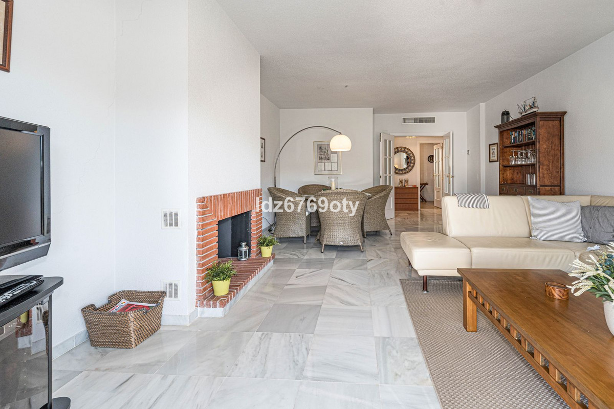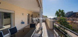 Het appartement met 3 slaapkamers, dat in uitstekende staat verkeert, heeft een woonoppervlakte van 120m2, ligt op het zuidwesten en bevindt zich op de 1e verdieping. Via de hoofdingang is er een rolstoellift naar de normale lift die je naar zowel de verschillende verdiepingen als de inpandige garage brengt. De flat is daarom gemakkelijk toegankelijk voor rolstoelen. De neutraal ingerichte flat is volledig gemeubileerd, voorzien van airconditioning/verwarming en heeft snelle Wi-Fi. De open en ruime keuken biedt diverse inbouwapparatuur, waaronder een vaatwasser, oven, magnetron, koelkast/vriezer en een keramische kookplaat. Vanuit de keuken heb je toegang tot een privé patio van 35m2 die op vele manieren gebruikt kan worden. Vanuit de eet/woonkamer met een gezellige open haard is er direct toegang tot het ruime terras van 40m2 met uitzicht op zee en ruimte voor zowel diverse ligstoelen als een eethoek voor 6 personen. De ruime hoofdslaapkamer heeft inbouwkasten en directe toegang tot het terras. De en-suite badkamer heeft dubbele wastafels, een bad/douche en een toilet. De tweede slaapkamer heeft inbouwkasten en ook toegang tot het terras en deelt samen met de derde slaapkamer een aparte tweede badkamer met een bad/douche en een toilet. De flat heeft ook een wasruimte met een wasmachine en een droger. In de ondergrondse parkeergarage is er een persoonlijke berging en 2 privéparkeerplaatsen.