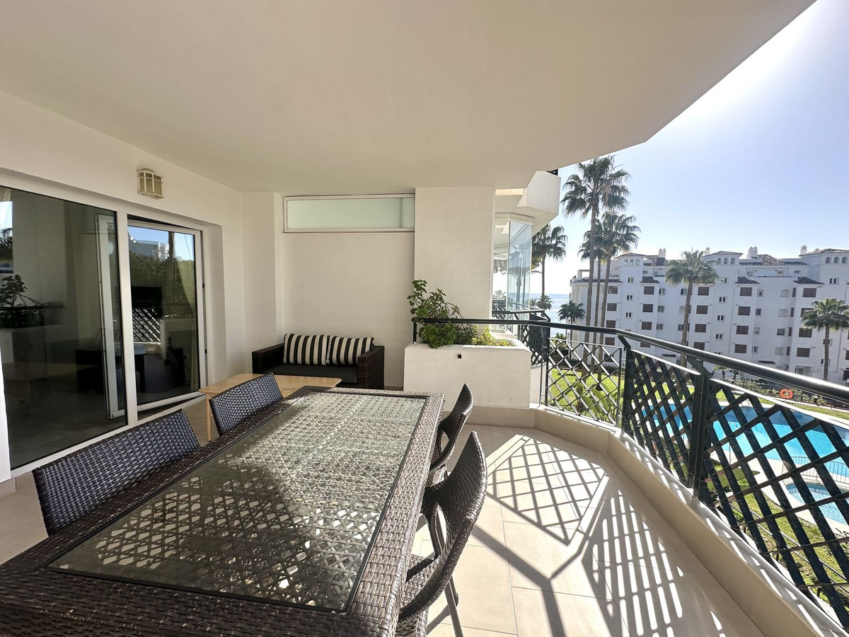 Dit lichte en ruime appartement met 2 slaapkamers en 2 badkamers biedt adembenemend uitzicht op zee en beschikt over een groot terras, perfect om te genieten van de mediterrane levensstijl.
