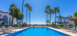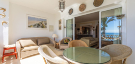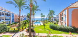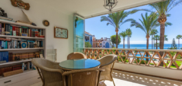 NIEUW OP DE MARKT: Prachtig appartement op de middelste verdieping in de eerste lijn van het strand, met een spectaculair uitzicht op de zee, het strand, Gibraltar en Afrika, gelegen in de exclusieve baai van Casares naast een beschermd historisch gebied met een oude Arabische toren, binnen het prestigieuze complex La Perla de la Bahía met een uniek ontwerp dat Andalusische en Arabische stijlen mengt, omgeven door weelderige tuinen, zwembaden (twee verwarmd), decoratieve fonteinen en ontspanningsruimtes; op slechts 2 minuten lopen van drie stranden, twee gerenommeerde restaurants en het beroemde Finca Cortesín golfresort, uitgeroepen tot beste golfresort van Spanje en gastheer van de Solheim Cup in 2023; strategisch gelegen tussen Estepona, Puerto de la Duquesa en Sabinillas, op slechts 5 minuten met de auto, met gemakkelijke toegang tot winkels, vrije tijd en andere golfbanen; omheinde gemeenschap met 24-uurs beveiliging en videobewaking; inclusief een garageplaats en een berging; perfect als droomhuis en als investering met een hoog verhuurpotentieel.