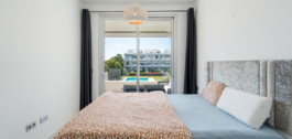 Dit lichte en ruime appartement met 2 slaapkamers en 2 badkamers ligt in de gewilde wijk Bel-Air, midden in het hart van de New Golden Mile. De hoofdslaapkamer heeft een en-suite badkamer met directe toegang tot een royaal terras van 21 m² met uitzicht op het prachtig onderhouden gemeenschappelijke zwembad – ideaal om te genieten van de mediterrane levensstijl.