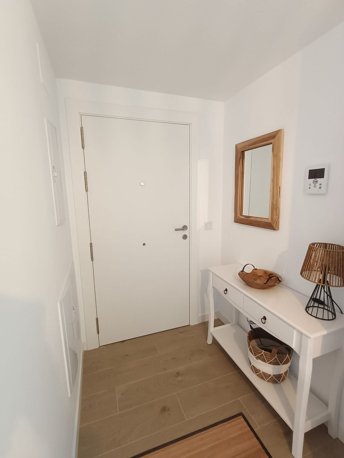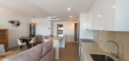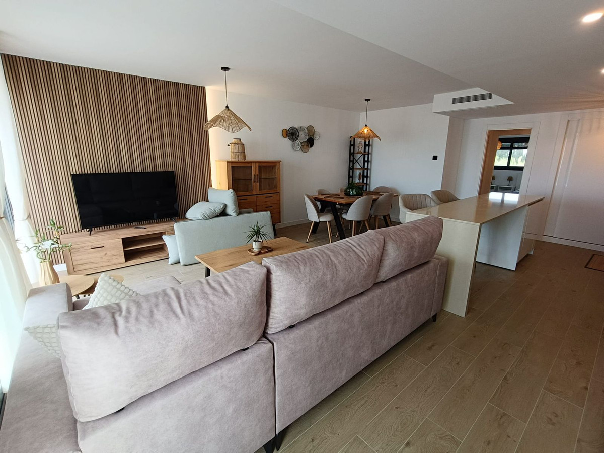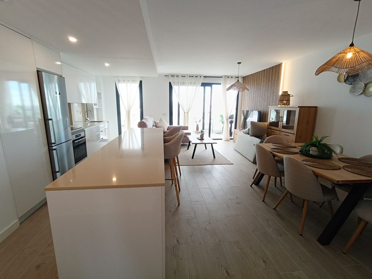 Gloednieuw appartement te koop. Bestaat uit 3 slaapkamers, 2 badkamers, woonkamer met open keuken en terras met uitzicht op zee. De oriëntatie is zuid en het appartement is erg licht. De parkeerplaats en berging zijn bij de prijs inbegrepen. Het appartement ligt in een omheinde wijk met zwembad.