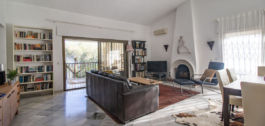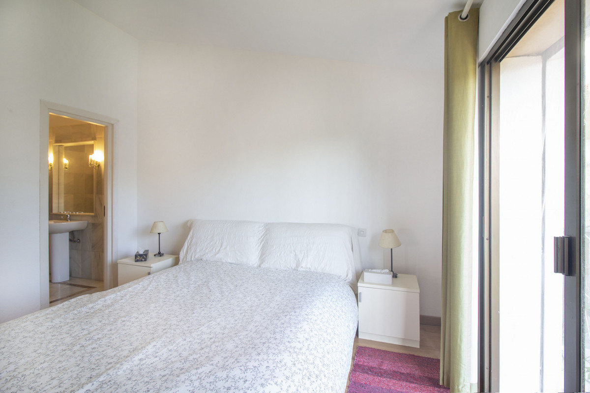Vanuit de woonkamer leiden schuifdeuren naar een overdekt terras met glazen gordijnen, waardoor een veelzijdige buitenruimte ontstaat die ideaal is om te ontspannen of te entertainen in alle seizoenen. Het terras biedt uitzicht over de perfect onderhouden gemeenschappelijke tuinen, omringd door volwassen groen en een groot zwembad dat je uitnodigt om te genieten van de levensstijl aan de Costa del Sol.