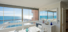 Aan het strand in Fuengirola, ruim appartement met spectaculair uitzicht op de jachthaven, de stad, de bergen en de stranden. Met een oppervlakte van 81 m² is dit ruime appartement gelegen op de 12e verdieping van het Airosa-gebouw zeer licht en biedt het frontaal uitzicht op de zee en de promenade. Het appartement is omgeven door grote ramen die zorgen voor een uitzonderlijke helderheid en helderheid van het interieur van de woning. Twee slaapkamers, de belangrijkste met een complete badkamer en douche. De andere slaapkamer deelt een badkamer met douche.