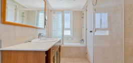 Twee volledige badkamers en een gastentoilet, afgewerkt met hoogwaardige materialen.