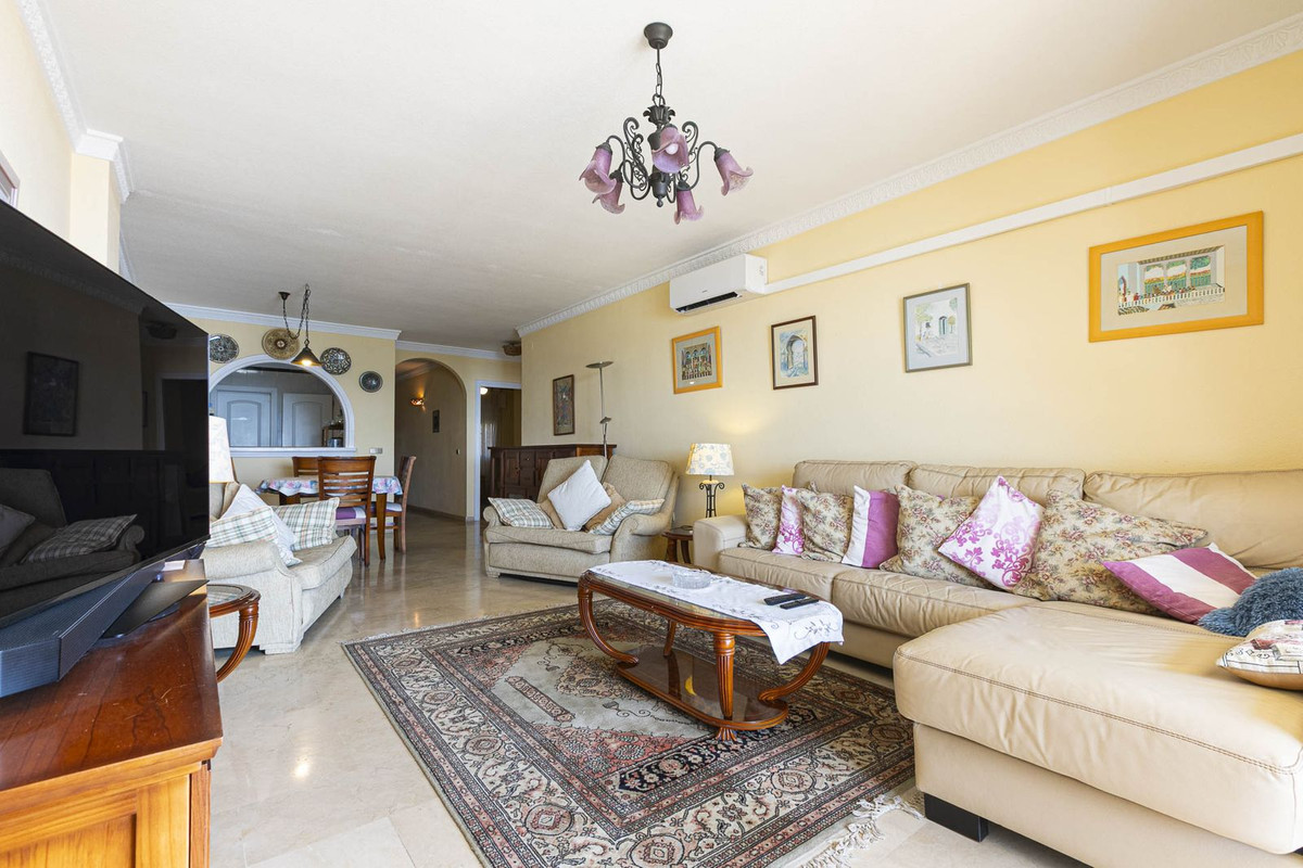 Elke ochtend wakker worden met het geluid van de golven en een adembenemend, ononderbroken uitzicht op de Middellandse Zee. Dit appartement van 97 m², met een terras van 17,5 m² (in originele staat), ligt op de 4e verdieping van een van de meest exclusieve complexen langs Fuengirola’s Paseo Marítimo.