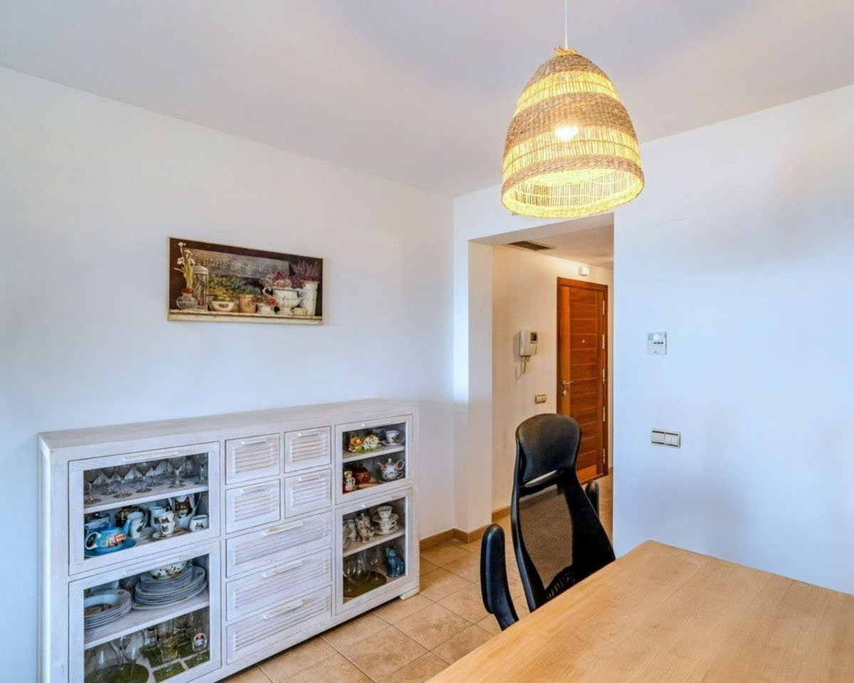 Onberispelijk, licht hoekappartement gelegen op loopafstand van de mooie badplaats La Cala de MIjas. Met toegang via de trap of lift, bestaat deze prachtige woning uit een hal, ruime woon / eetkamer, terras op het zuidoosten met uitzicht op het zwembad en de zee, grote moderne volledig ingerichte keuken met aparte wasplaats / bijkeuken, grote slaapkamer met ensuite badkamer, 2 slaapkamers en een familie badkamer. Alle slaapkamers hebben inbouwkasten en grote openslaande deuren met kleine balkons. Het meubilair in het appartement is optioneel. Daarnaast beschikt de woning over een ondergrondse privéparkeerplaats met aangrenzende berging. Het complex heeft een overvloed aan buitenparkeerplaatsen voor gasten, prachtig onderhouden en brandschoon gemeenschappelijke ruimtes en tuinen, een zoutwaterzwembad, ligweiden en een padel tennisbaan. Ook is er een conciërge bij de poort van de gemeenschap voor de meeste uren van de dag plus video-intercomcamera’s. Alles op 2 minuten lopen van winkels, bars en restaurants en op slechts 10 minuten lopen van het strand, plaatselijke scholen, openbaar vervoer en het bruisende centrum van La Cala. Korte termijn verhuur is niet verboden, maar onderworpen aan de gebruikelijke goedkeuringsregels van de AVA.