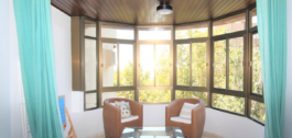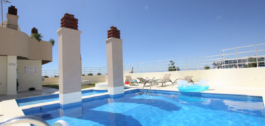 Op de bovenste verdieping van het gebouw is een solarium en zwembad met prachtig uitzicht op de zee en de bergen.