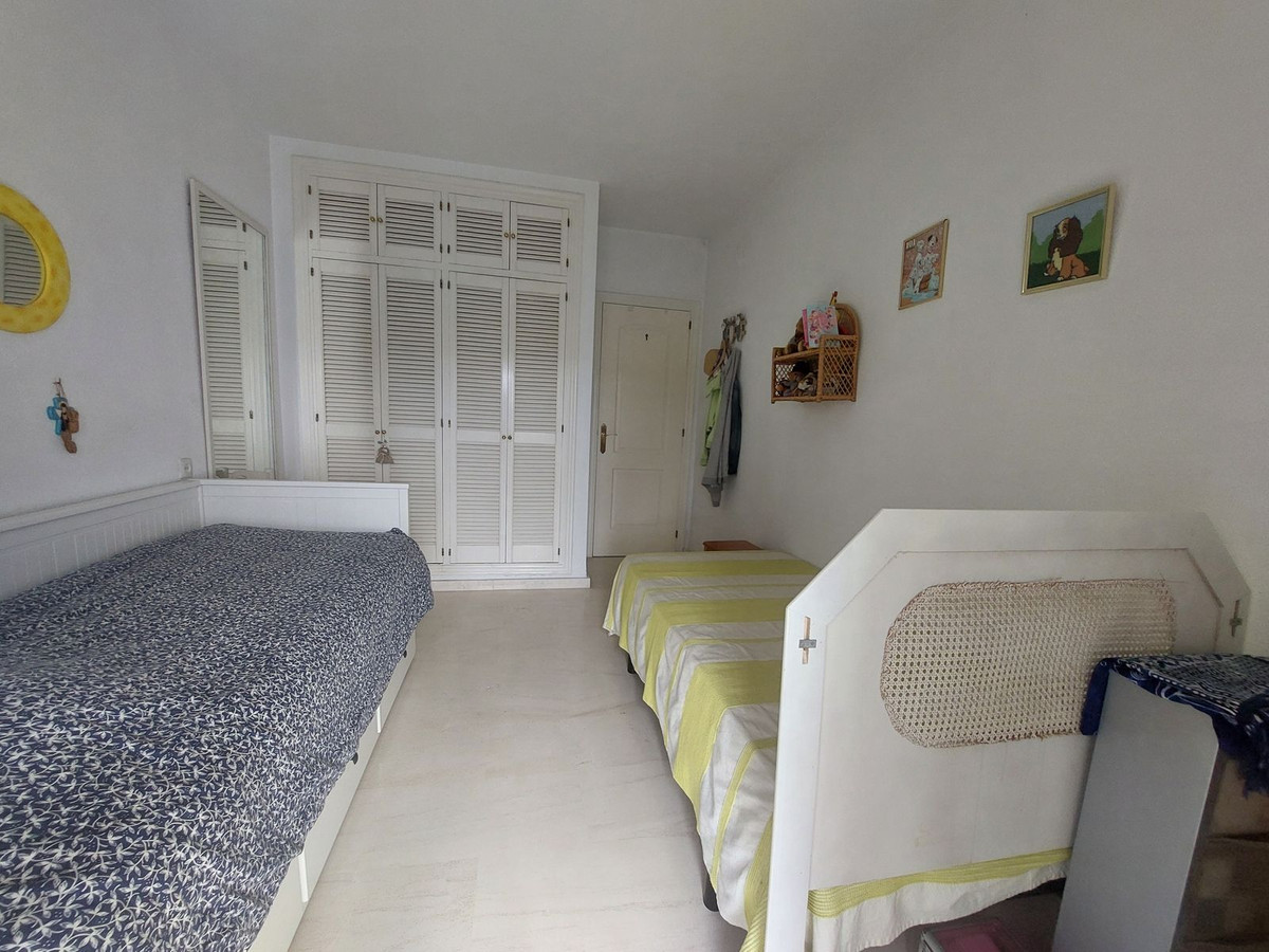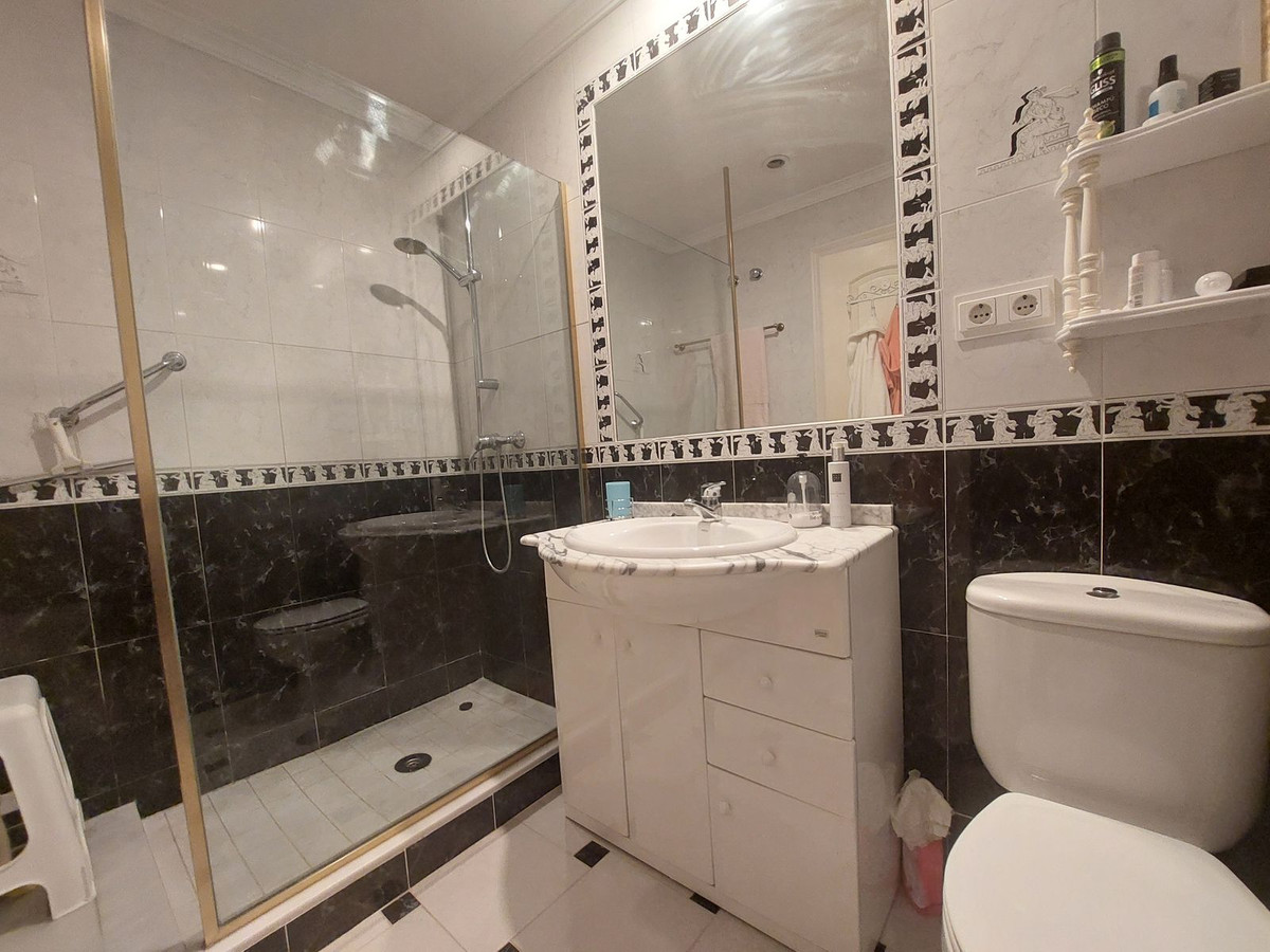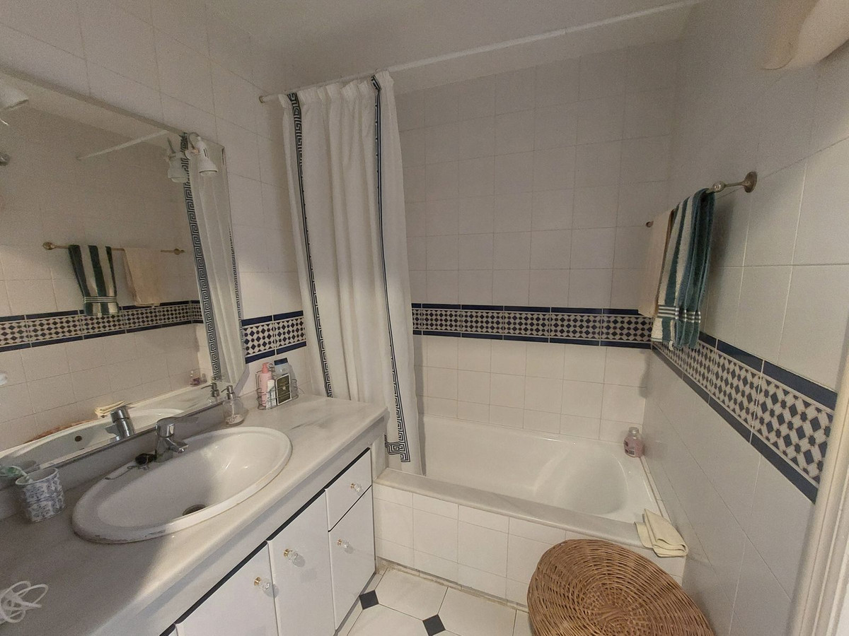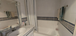 Twee ruime slaapkamers en twee grote badkamers, waarvan een en-suite, beide met inbouwkasten.