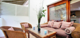 De woning is verdeeld in een ruime woon-eetkamer met een groot terras met uitzicht op het westen over de tuinen van de urbanisatie. Het terras is erg intiem en rustig. Twee slaapkamers en twee complete badkamers, een met een bad en de andere met een douche.