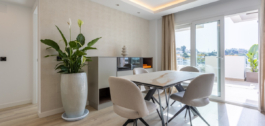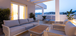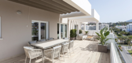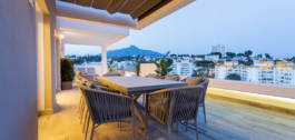 Ervaar het verfijnde kustleven op zijn best in dit uitzonderlijke penthouse op het zuiden, genesteld in het hart van de gewilde wijk La Campana. Deze ruime woning met vier slaapkamers en twee badkamers combineert hedendaagse elegantie met moeiteloze functionaliteit en biedt een levensstijl die wordt gedefinieerd door comfort, stijl en royale proporties, zowel binnen als buiten. Vanaf het moment dat je binnenstapt, word je verwelkomd in een lichte open woonruimte waar een strak modern ontwerp samenkomt met ontspannen raffinement. De woon- en eetgedeeltes lopen naadloos over in een prachtig ingerichte keuken, volledig uitgerust met high-end apparatuur, voldoende opbergruimte en strakke, minimalistische afwerkingen die de ruimte op een hoger plan brengen met behoud van een warme, uitnodigende sfeer.