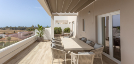 Wat dit penthouse echt uniek maakt, is het uitgestrekte privéterras, dat zich uitstrekt over de volledige lengte van het pand en toegankelijk is vanuit zowel de woonkamer als alle slaapkamers. Met de ideale oriëntatie op het zuiden wordt dit buitenverblijf de hele dag door overspoeld met zonlicht en biedt het de perfecte setting voor een kopje koffie ’s ochtends, dineren in de buitenlucht of gezellige avonden onder de sterrenhemel. Het terras voegt een buitengewoon gevoel van openheid toe aan het huis, waardoor de grens tussen binnen en buiten vervaagt en het een toevluchtsoord wordt voor iedereen die waarde hecht aan ruimte en sereniteit.