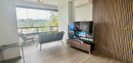 Modern appartement van 50 m² volledig gerenoveerd en gemeubileerd, gelegen op de 3e verdieping met lift en receptie. Beschikt over een lichte woonkamer met airconditioning, prachtig uitzicht, en een wasruimte die kan worden gebruikt als tweede slaapkamer. Geniet van geweldige gemeenschapsvoorzieningen, waaronder een zwembad, goed onderhouden tuinen en conciërge.