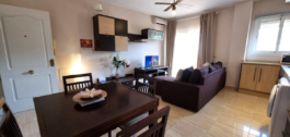 Het appartement is volledig gemeubileerd en uitgerust, klaar om in te trekken of te huren vanaf de eerste dag. Het beschikt over een gemeenschappelijk zwembad, een eigen parkeerplaats en warm/koud airconditioning in de woon-eetkamer en keuken.
