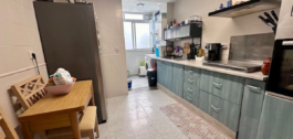 De woonkamer kijkt uit op de hal, is erg licht, met twee grote ramen (het appartement heeft geen terras), en de woonkamer is vrij ruim. (Het heeft split airconditioning).
