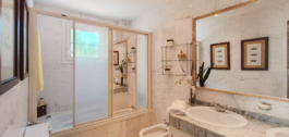 Griekse marmeren vloeren in de belangrijkste ruimtes, het terras en de primaire badkamer; keramisch aardewerk van hoge kwaliteit in de secundaire badkamers en keuken.