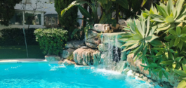Prachtig aangelegde tuinen en vijf sprankelende gemeenschappelijke zwembaden in verschillende fasen.