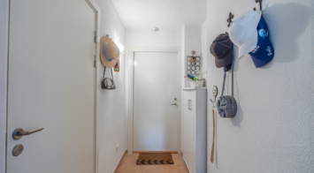 De indeling biedt een uitnodigende open woon- en eetkamer met directe toegang tot het ruime terras, een moderne nieuwe volledig ingerichte keuken met toegang tot een bijkeuken, en twee goed ingerichte badkamers. Beide slaapkamers bieden opbergruimte en inbouwkasten, waarbij de hoofdslaapkamer is ingericht als ensuite. De tweede slaapkamer biedt gemakkelijk toegang tot een gastendoucheruimte.