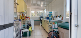Grenzend aan het terras vind je een bijkeuken van 12 m² met een gloednieuwe wasmachine/droger en een werkplaats met veel kasten en aanrechtruimte.