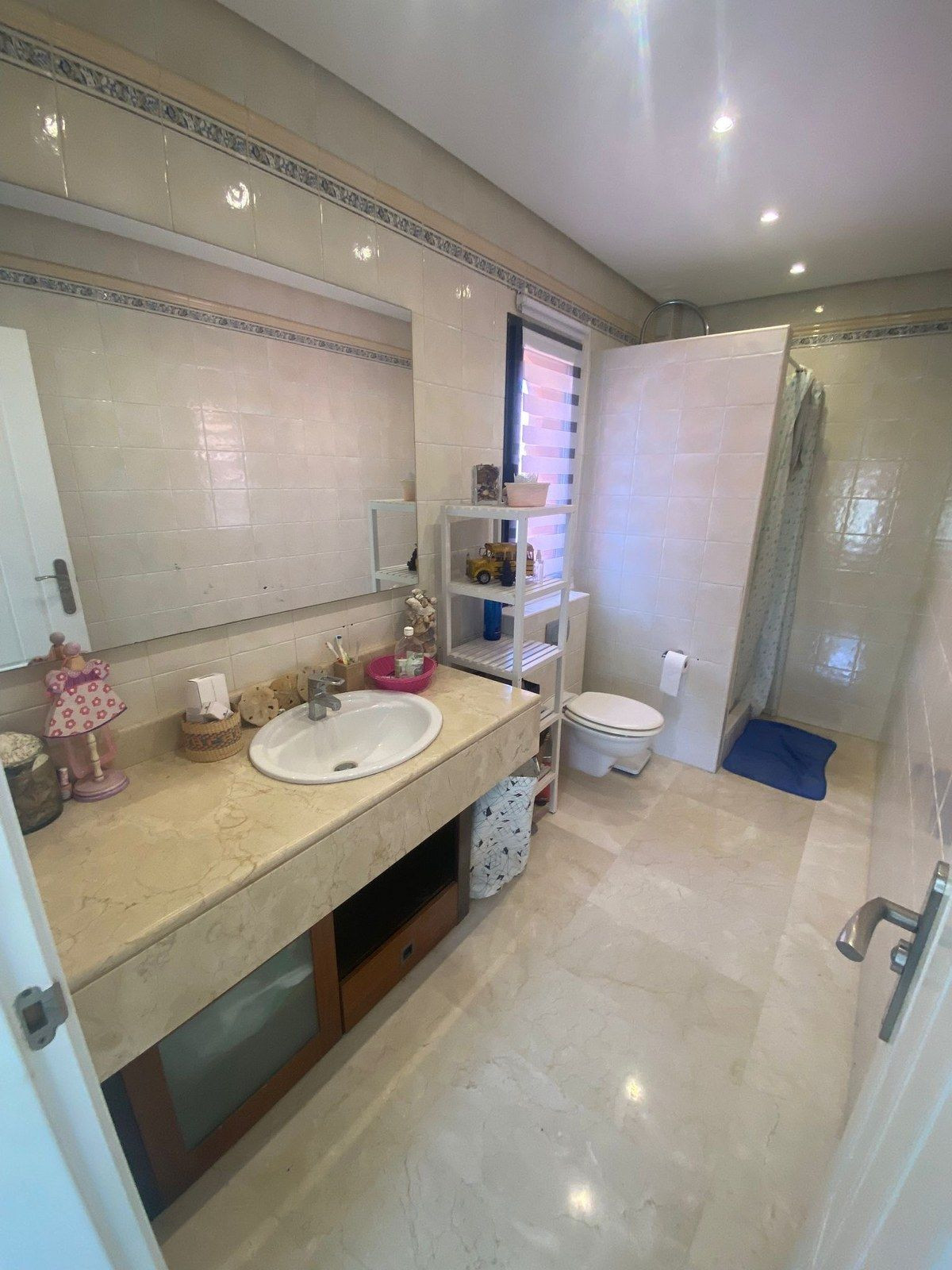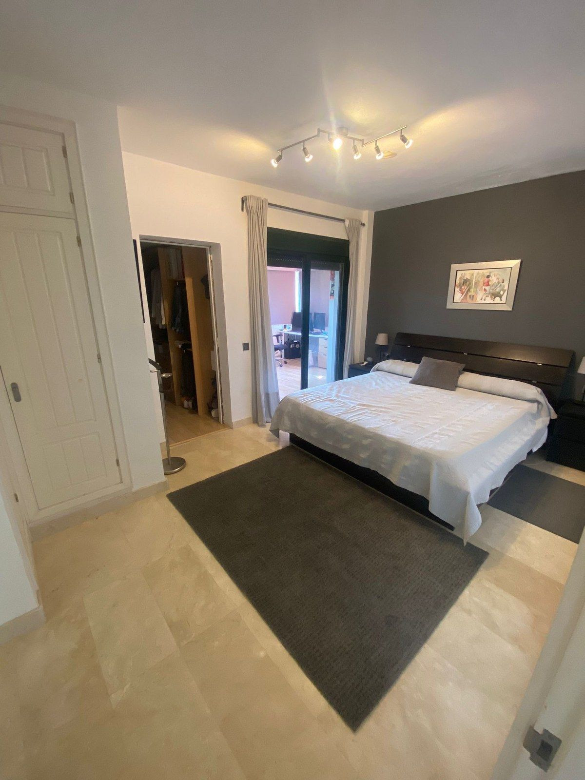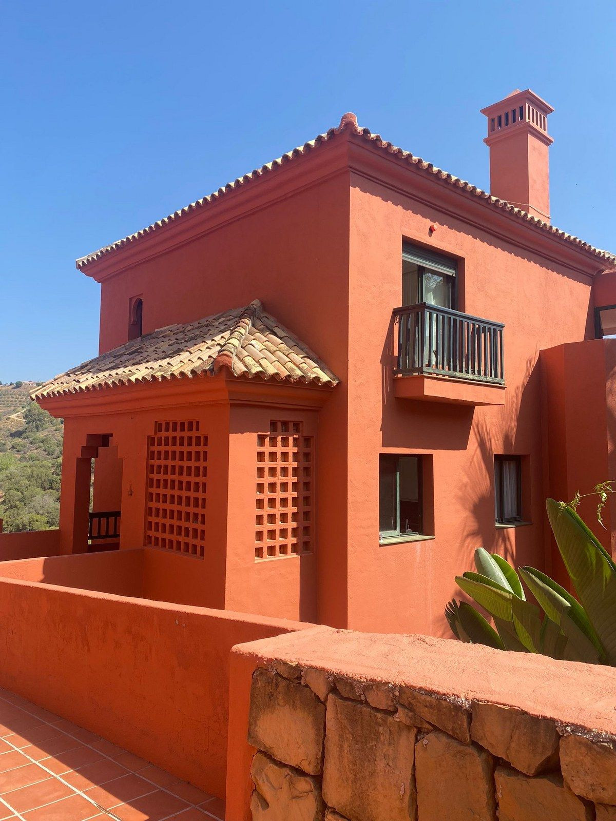 Een niveau hoger vind je nog 2 tweepersoonsslaapkamers, beide met een eigen en-suite badkamer en een eigen balkon. De ouderslaapkamer heeft een inloopkast en een extra aangebouwde kamer die de eigenaar tot zijn kantoor heeft gemaakt (vroeger was het een open terras, de eigenaar heeft het afgesloten om er een kantoor van te maken, maar het kan weer worden geopend.