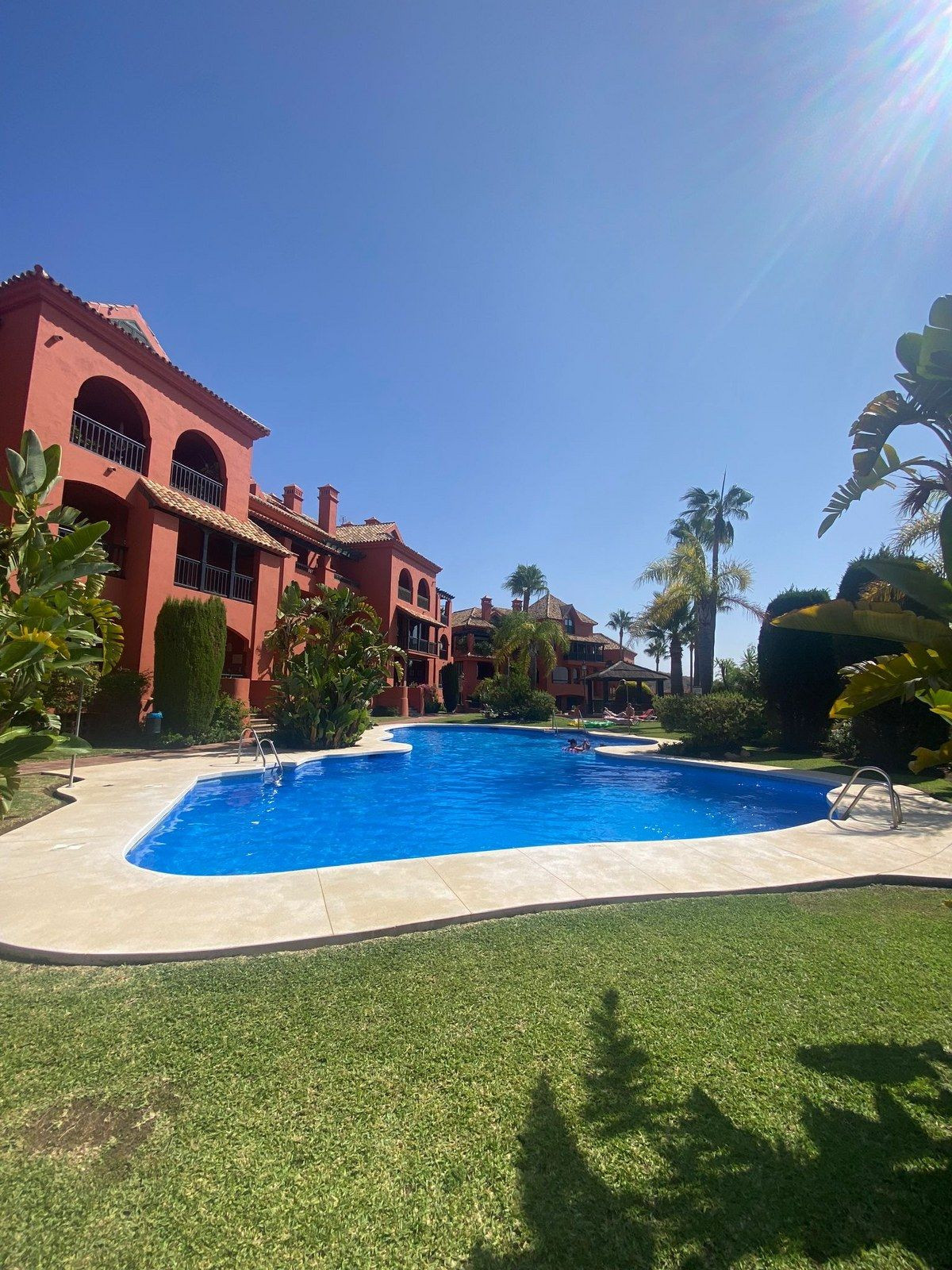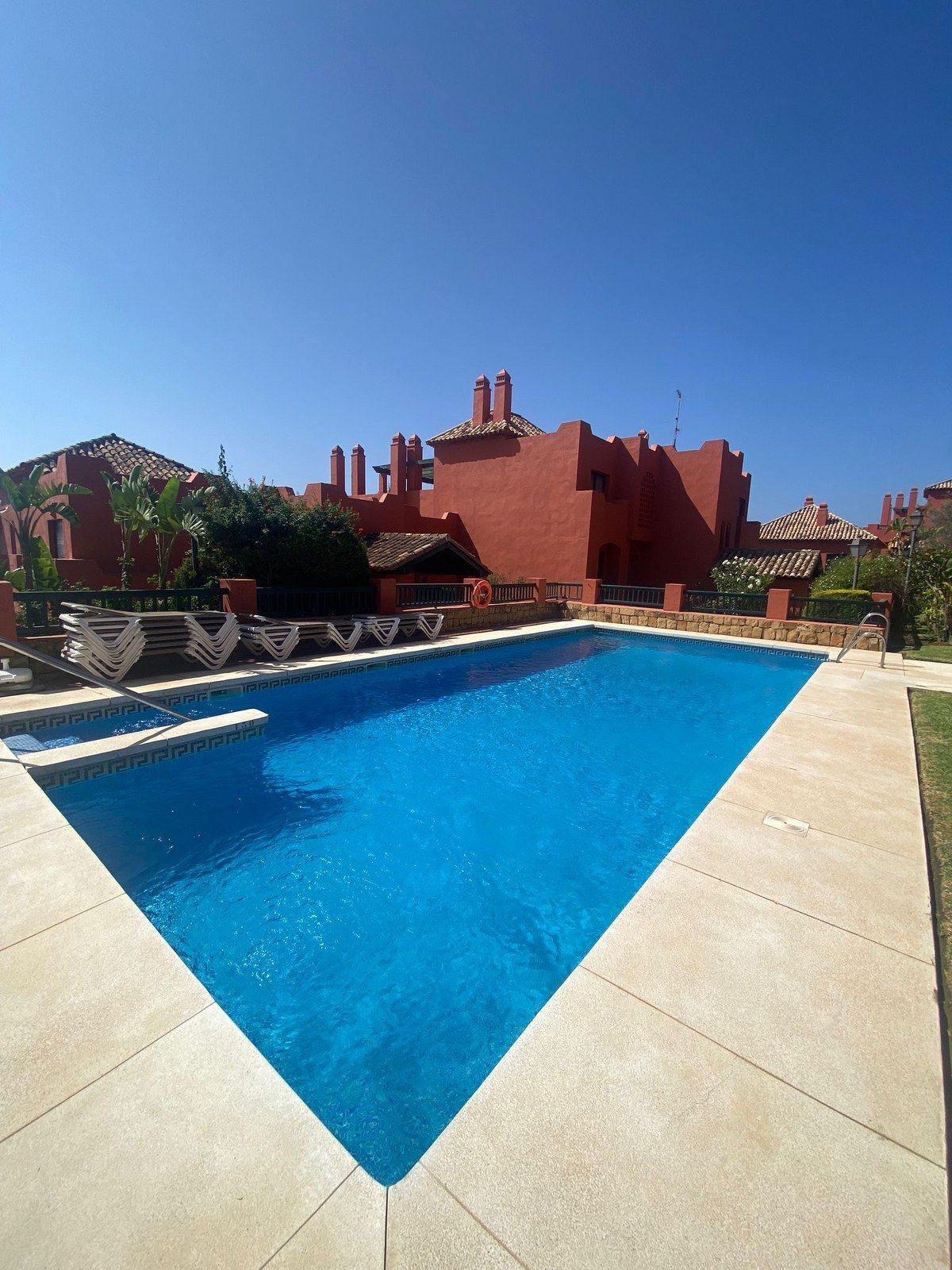 Het complex is onberispelijk onderhouden met tropische tuinen, 2 gemeenschappelijke zwembaden en voldoende gemeenschappelijke parkeergelegenheid zeer dicht bij de bloque.