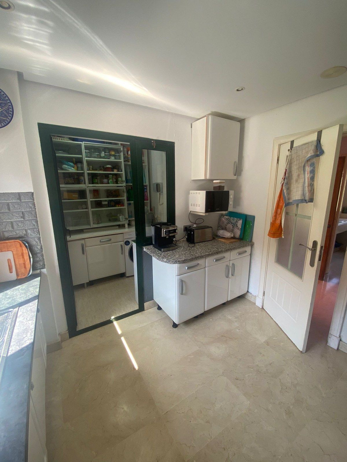 Eigen ingang op de begane grond met een gastentoilet, ruime keuken met aparte bijkeuken, 3e slaapkamer met eigen balkon, grote woon / eetkamer die leidt naar het grote overdekte terras met ingebouwde glazen vouwramen waardoor het ook geschikt is om op het terras te dineren in de wintermaanden, eigen verborgen berging op het terras.