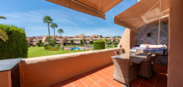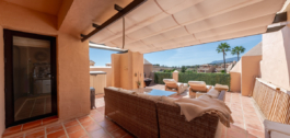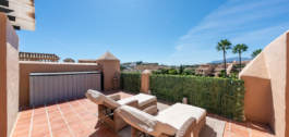 Welkom bij dit prachtige duplex penthouse in de exclusieve, omheinde gemeenschap van La Cartuja del Golf – een echt verborgen juweeltje tussen Marbella en Estepona.