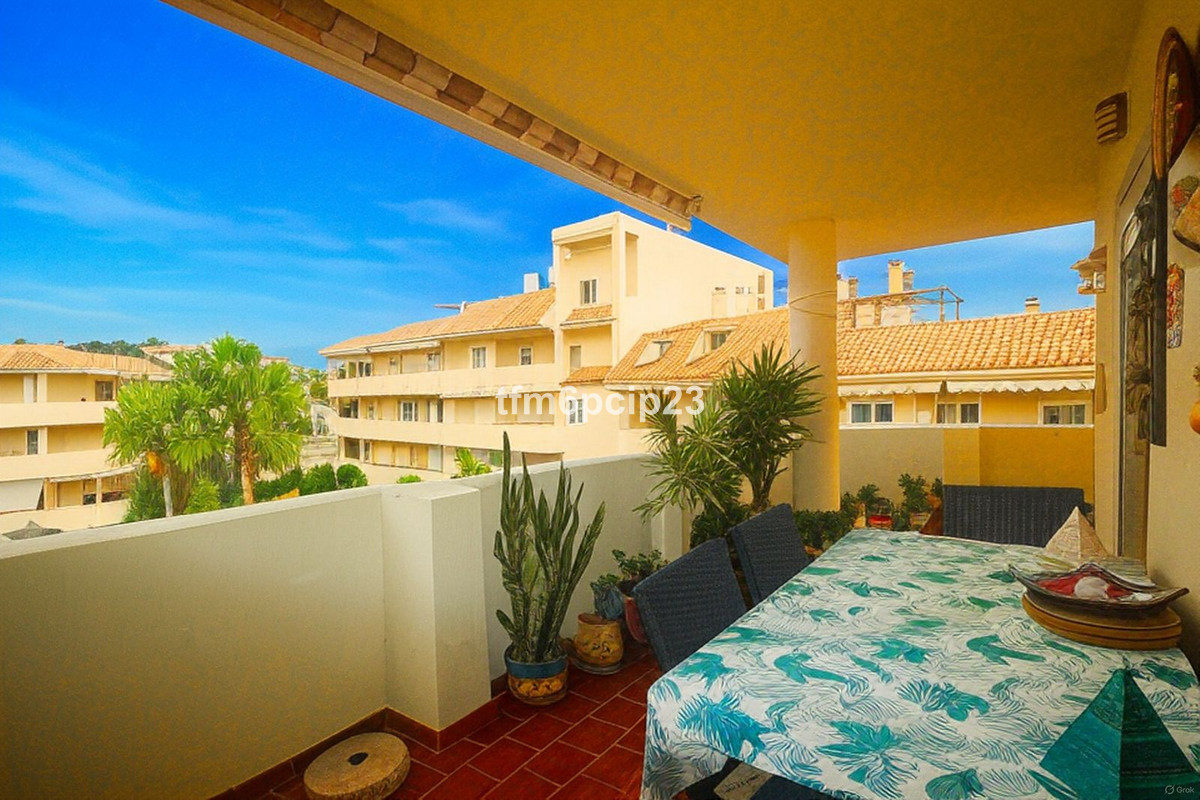 Lichte en ruime penthouse duplex met 2 slaapkamers en 2 badkamers, 85 m² bebouwd en een indrukwekkende 63 m² aan zonnige terrassen. Ideaal gelegen dicht bij golf, de zee, de stad en de jachthaven, geniet deze woning op het zuidwesten van uitzicht op de bergen, de tuin en het zwembad. De woning beschikt over een royaal solarium, overdekte en privéterrassen, marmeren vloeren, inbouwkasten en een berging. Volledig gemeubileerd met een moderne, volledig ingerichte keuken en klimaatbeheersing (warm & koud A / C). Gelegen in een beveiligd complex met toegangstelefoon, gemeenschappelijk zwembad, aangelegde tuinen en ondergrondse privéparkeerplaats. Gemakkelijke toegang tot vervoer en alle lokale voorzieningen. * LET OP: DE WONING IS VOORZIEN VAN TWEE RUIME BERGINGEN*.
