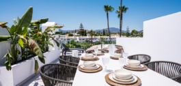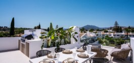 Boven alles is het privé dakterras het kroonjuweel van dit huis. Het is ontworpen voor ultieme ontspanning en entertainment en biedt 360º panoramisch uitzicht over de kust en richting de iconische La Concha berg. Hier vind je een ingebouwde BBQ, een volledig uitgeruste buitenkeuken, een eethoek, een buitendouche en voldoende ruimte om te ontspannen onder de zon of de sterren – een idyllische omgeving die een luxueuze mediterrane levensstijl definieert.