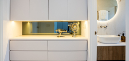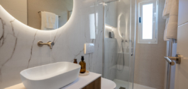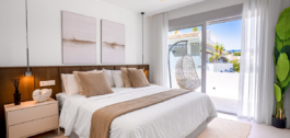 De twee slaapkamers zijn meesterlijk ontworpen en bieden een serene sfeer met ingebouwde, ruime kasten en prachtig ingerichte ensuite badkamers. Elke badkamer heeft inloop-regendouches en hoogwaardige armaturen, die een spa-achtig gevoel geven aan het dagelijks leven. De master suite is een echt toevluchtsoord, met grote schuifdeuren die ook openen naar het terras, waardoor de verbinding tussen binnen en buiten wordt versterkt.