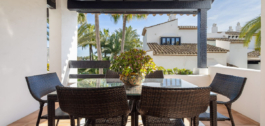 Dit gerenoveerde hoekpenthouse op het zuiden, gelegen in het exclusieve Puente Romano resort, biedt een woonervaring die gemak en comfort perfect in balans brengt. Met een adembenemend uitzicht vanuit de ramen met twee perspectieven weerspiegelt dit verblijf de essentie van mediterraan wonen op zijn best en biedt het een zeldzame kans om een hoekpenthouse te kopen op een van Europa’s meest eersteklas locaties.