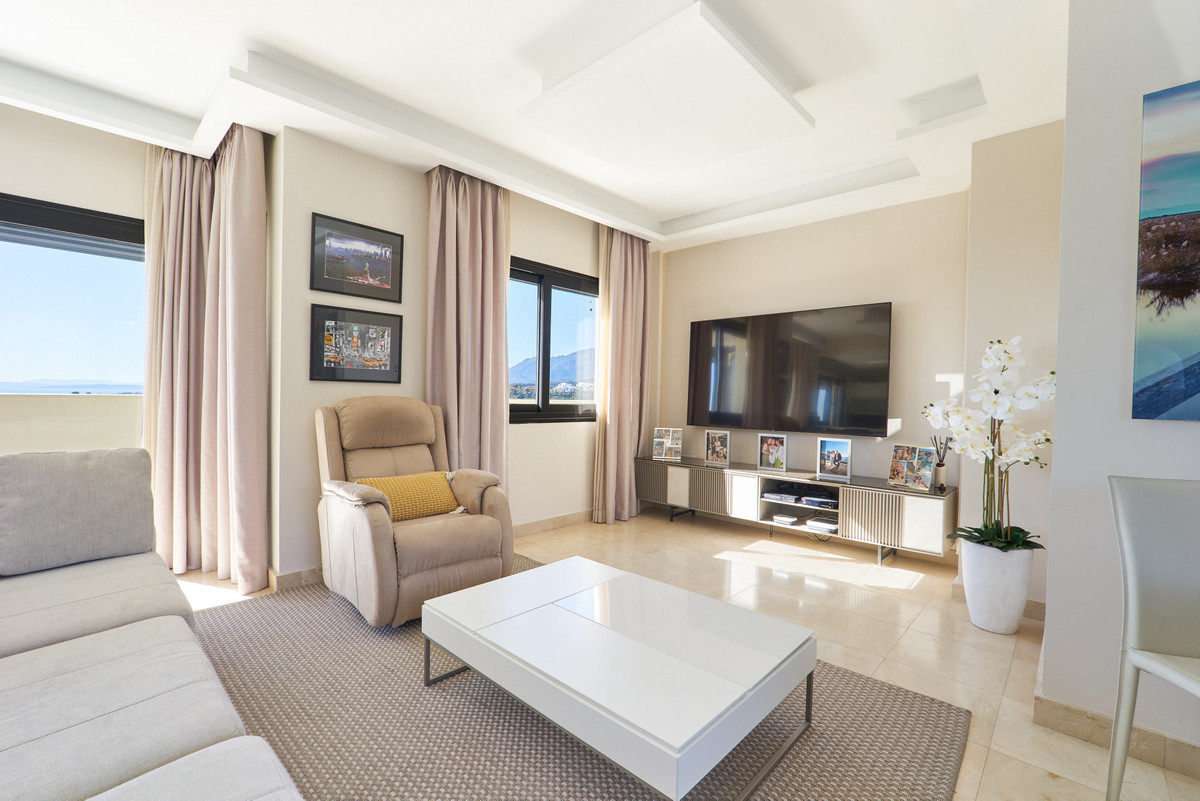 Het hoogtepunt van dit penthouse is het buitenleven met een privéterras dat panoramisch uitzicht biedt op de zee, de bergen en de golfbanen. Bewoners kunnen ook genieten van drie gemeenschappelijke zwembaden en een prachtige tuin, evenals toegang tot een tennis-/paddlebaan en minigolf. De woning maakt deel uit van een omheinde gemeenschap met een beveiligde ingang, video-intercom en lift, voor gemoedsrust en gemak. Extra voorzieningen zijn onder andere elektrische rolluiken, dubbele beglazing, berging en glasvezelinternet.