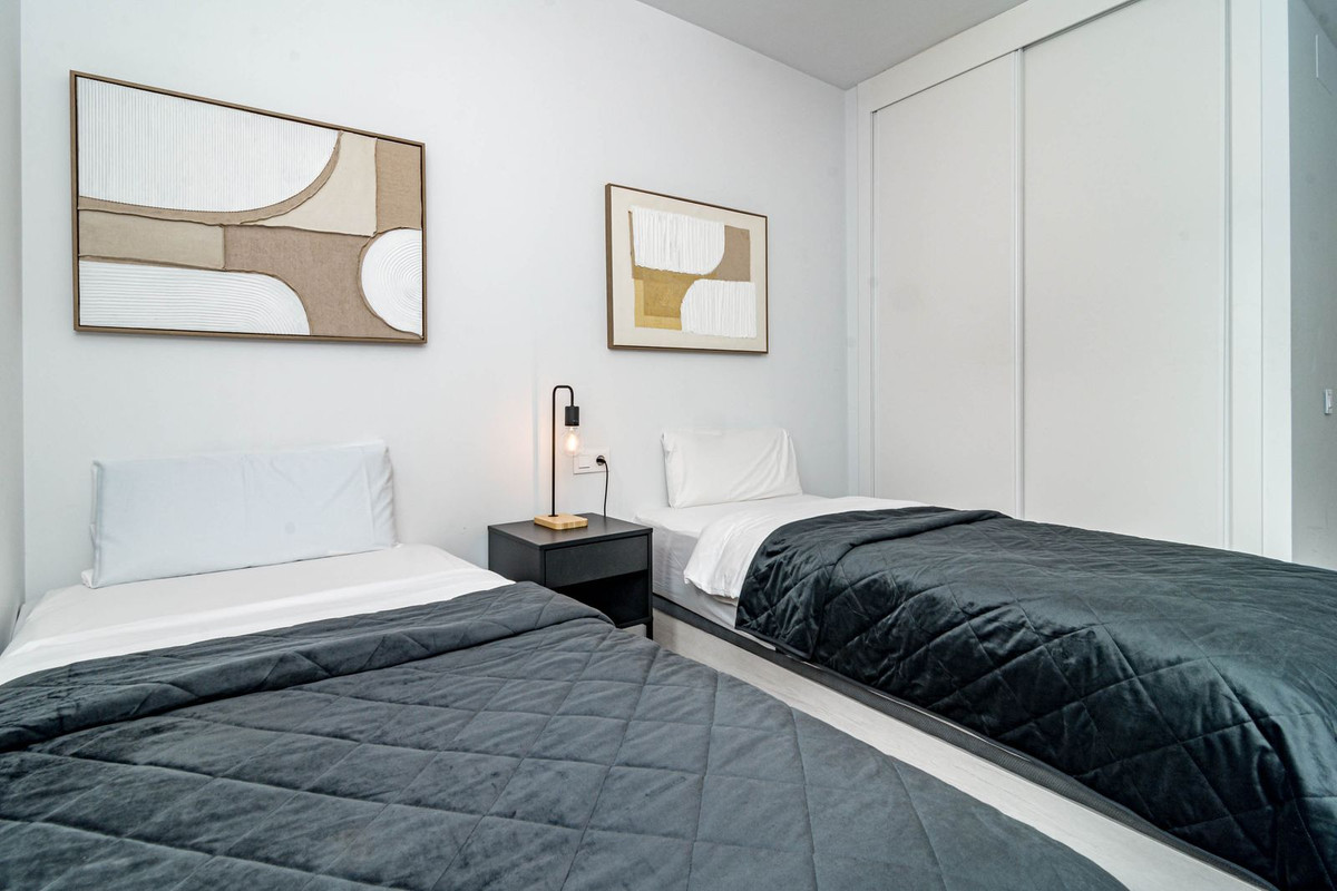Estepona Gardens is ontwikkeld door een van de grootste bouwers van Spanje en biedt uitstekende gemeenschappelijke faciliteiten, waaronder een zwembad en een kinderspeelplaats. Het appartement is ideaal als permanente woning of als vakantiewoning, dankzij de centrale ligging, het eenvoudige onderhoud en een actieve, geldige toeristenvergunning. Binnen vind je een aparte keuken en een aangrenzende bijkeuken met een wasmachine en boiler. De slaapkamers hebben ingebouwde kasten en het interieur is afgewerkt met lichte materialen van hoge kwaliteit.